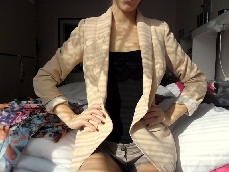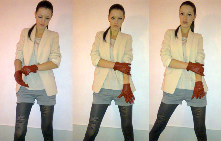 | shorts: from Germany pantyhose: from Germany boots: vintage blazer: Ivana Klepáčová t-shirt: newyorker necklace: D.I.Y. earrings: chocolate brown from Gate |