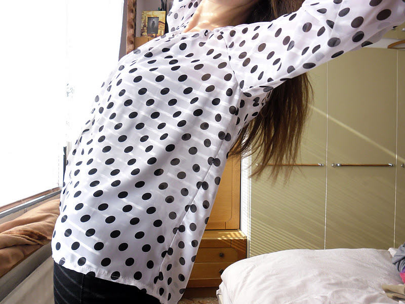 Zbožňuju puntíky a kombinace černobílé. Ta halenka je krásná 🙂