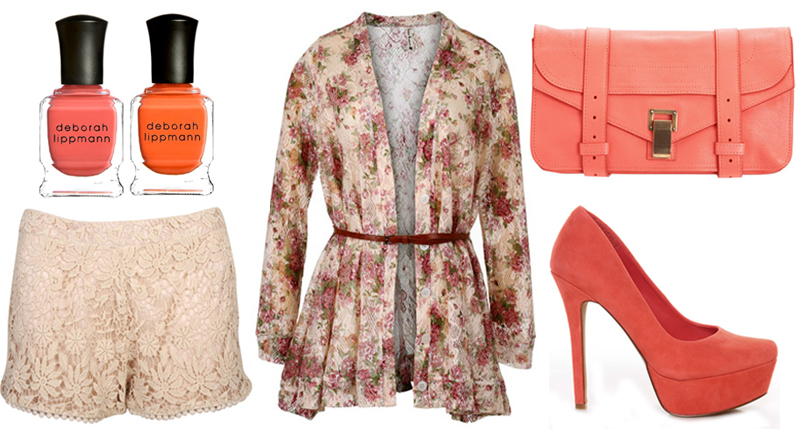 Naposledy pri nákupe látok som neodolala tejto ťažko zastihnuteľnú farbu fotoaparátom “korálová” 🙂 to nehovorím o tom, že pôvodný plán bol kúpiť si len látku na šortky, ktoré ste už mali možnosť vidieť, a skončili sme pri troch. Ako môžete vidieť výsledok z polyvore definovanie farby je všemožné od “do oranžova” až po “do ružova” veď ju aj veľa ľudí definuje ako ružovo-oranžová. Šaty, ktoré na mne vidíte boli šité podľa tohto návrhu, no golier som ešte nestihla, resp. stále rozmýšľam akej farby, ale asi urobím dva: maslový a čierny s perličkami.