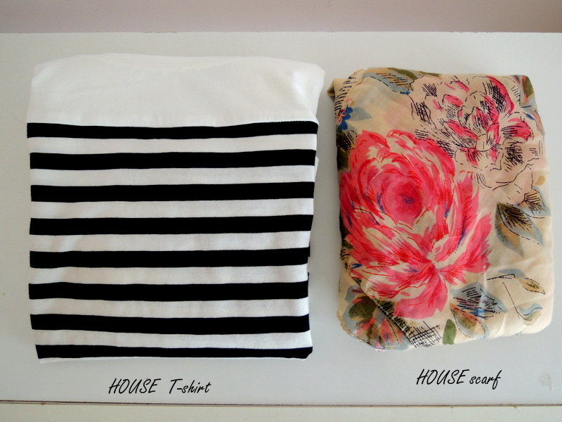 Sľúbený príspevok o mojich úlovkoch v House 🙂 Moja zbierka náušníc sa pekne rozrástla. Jednu sadu tvoria čierne trojuholníky, zlaté kosoštvorce a zlaté kocky s čiernymi bodkami. Sada stála cca 3 eurá, ako som už písala dostali sme zľavu 30% k MDŽ. Farebné, náušnice som si kúpila sama za približne 2 eurá, takisto so zľavou. Tričko ste mohli vidieť v outfite TU a nakoniec ma očarila aj šatka. Síce ich mám asi dvadsať, ale šatiek nie je nikdy dosť. Niektoré som dostala, niektoré som si doniesla z výletov zo zahraničia. Najviac ma mrzí, že som si žiadnu nedoniesla z Paríža. Táto šatka stála po zľave 2,50 eur a tričko 9,99 eur.