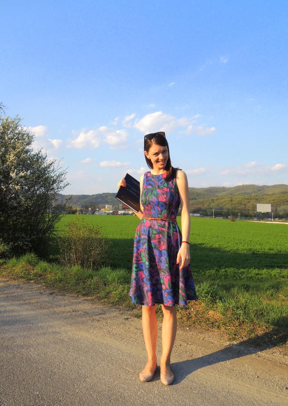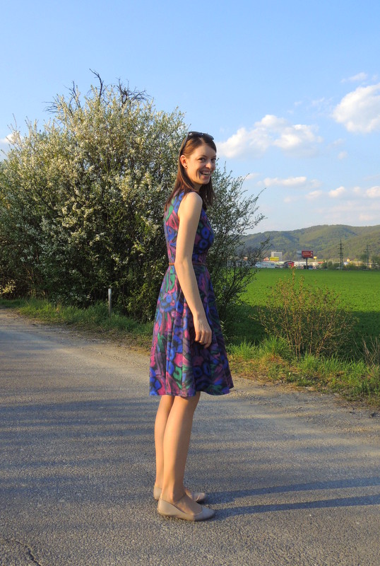 Šaty vznikli úplne spontánne. Prišla za mnou mama, ešte v čase keď som bola veľmi zúfala, že asi nestihnem dopísať DP, a ukázala mi túto látku, že či si mám čo obliecť na štátnice. Vymysleli sme strih, chcela som prestrihnuté v páse, dlhé po kolená a chcela som aby sa krásne točili 🙂 Všetko splnené! Šaty sú veľmi príjemné a po dnešnom dni viem, že ich budem nosiť veľmi rada aj keď neviem či do štátnic neušijeme ešte jedny. Tento strih šiat je môj najobľúbenejší, len upravujem dĺžku. Zhrnutie je jednoduché: mám super mamu, aj keď občas ako každá mama sa mi zdá, že jednoducho “nemá pravdu” lebo má pravdu a ja ju len v tej chvíli nechcem počuť :)))