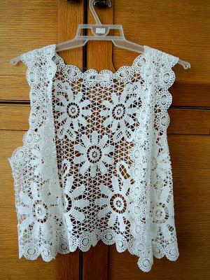 Na štítku je napísané. Výška 170 cm vek 14 rokov. Ja som ju aj napriek tomu jednoducho musela mať. Hačkovaná vesta so vzormi kvetov. V poslednej dobe sa mi veľmi páčia háčkované a krajkovane veci. Veľmi sa mi páčia v kombinácii s rifľovinou resp. keď sú priamo na nej našité. Šortky, košele alebo šaty 🙂