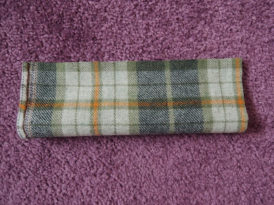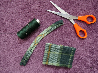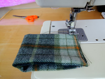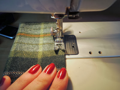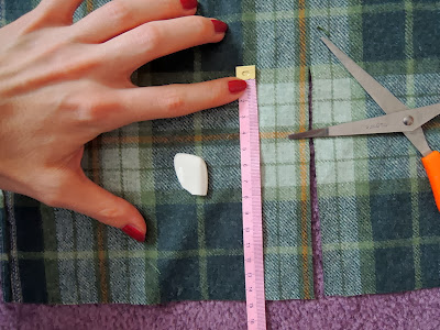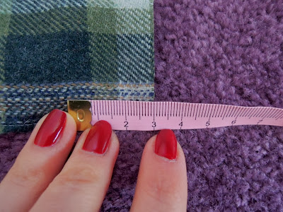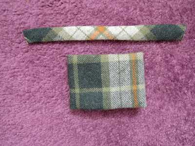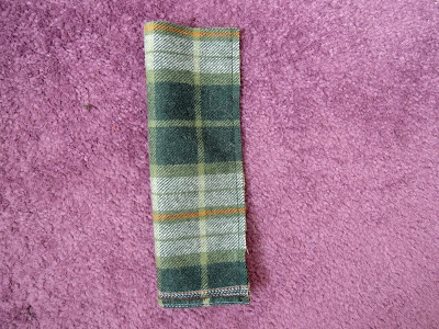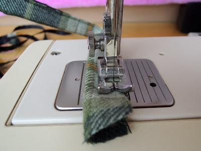 Odmerajte cca 5 cm široký a cca  70 cm dlhý kus látky.  Dĺžku prispôsobte podľa obvodu krku. Látku odstrihnite a zošiť dokopy po dĺžke. Ja som na to išla trošku zložitejšie, preto tých veľa fotiek, ale jednoduchšie je vopred si urobiť dlhší pás, aby ste z neho už len strihali. Ja som chcela svetlý rozdeľovací pásik (ten stred) t.j. chcela musela som si urobiť 2x pásiky. Jeden svetlý na stred a druhý na zapínanie na obvod.