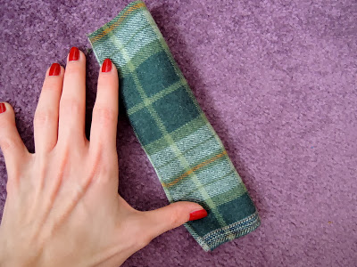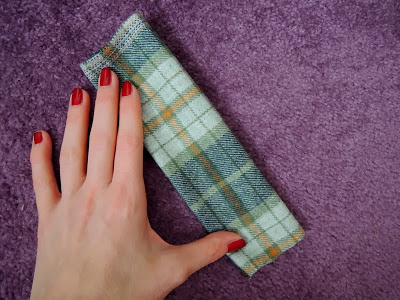 Ako prvé som si rozložila látku na pracovnú plochu. Ak zvolíte viac farebnú alebo vzorovanú látku, dobre si rozmyslite aké farby/vzory chcete, aby bolo vidno na motýlikovi, až potom strihajte. Odmerajte som si cca 19x 15cm látky a odstrihnite. Látku si zložte na polovicu a zošite naruby dokopy. Látku si otočte a vyžehlite.