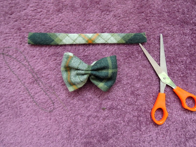 Z pásika chceme vyrobiť stred, ktorý bude takto pekne držať motýlika pokope. No najprv si zoberte ihlu a niť, v rovnakej farbe ako je látka, a zošite obidve strany motýlika dokopy (ako harmoniku).