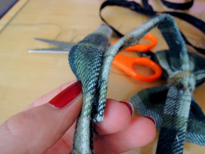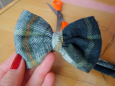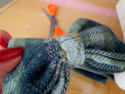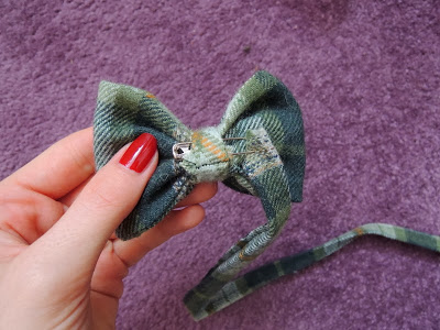 Ja som opäť zvolila trošku zložitejšiu cestu. Nešila som priamo na motýlikovi ihlou, ale odstrihla som si stred, ktorý som zošila na stroji a potom ho navliekla na motýlika (upozorňujem, že to ide ťažko) 🙂