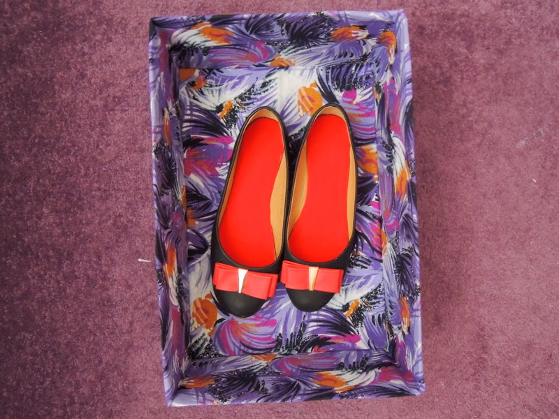 Krabicu nechajte poriadne zaschnúť a voilá nový doplnok je na svete. Perfektne sa hodí do novej fialovej izby. Inak už takmer všetky balerínky majú nové krásne vnútro, podľa tohto postupu 🙂