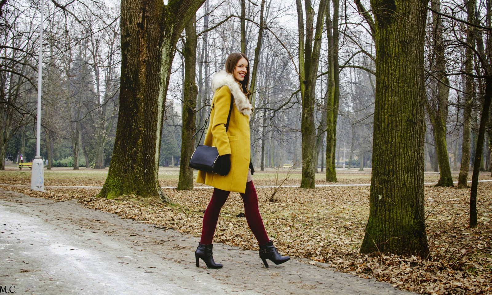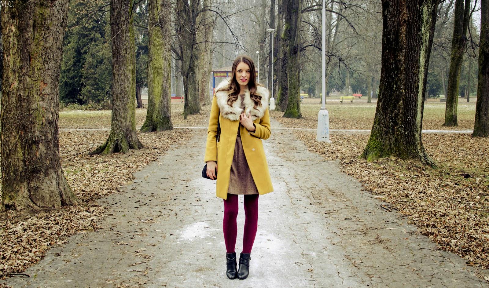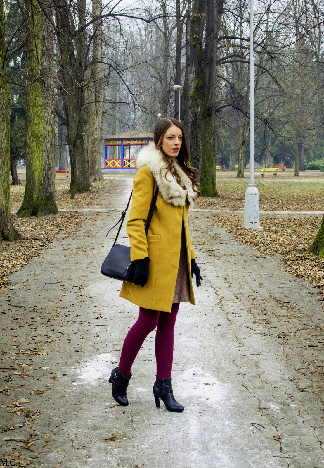 dress, coat: Ivana Klepáčová faux fur: vintage shoes: humanic bag, gloves: reserved belt: f&f knee socks: ?