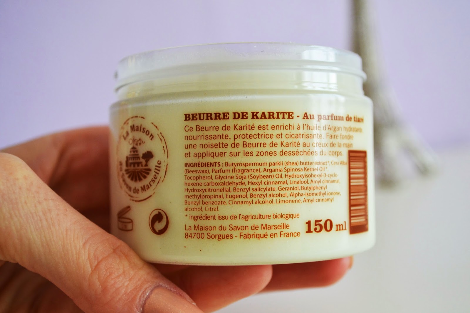 Hneď ako som otvorila balíček, maslo bolo prvé ktoré som hneď chcela vyskúšať. Kto by nechcel po prečítaní takého skvelého opisu a množstve výživných látok, ktoré budú vašu pokožku hýčkať 🙂 Otvorila som balenie, ktoré ma očarilo už nápisom “La Maison du Savon de Marseille” a ja som si predstavovala ako ho niekde vyrábali. Predstavte si kocku obyčajného masla. Máte? Tak toto je to maslo natlačené v tégliku 🙂 Je ale trošku tuhšie takže pri nanášaní sa musíte trošku potrápiť, ale na druhý krát to ide, doslova, ako po masle. Po kontakte s pokožkou a jemnom masírovaní sa maslo pekne “roztopí” a vstrebe. Pokožka je hebká a krásne voňavá. Je to zaujímavý výrobok a naozaj ma zaujíma koľko vydrží, lebo ho netreba až tak veľa. Použila som ho už niekoľko krát a moja pokožka je jemná a hebká. Takisto odporúčam vyskúšať.