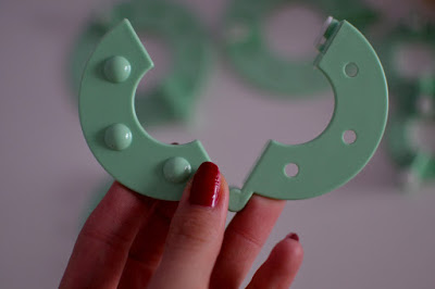 Set sa skladá z umelohmotných koliesok, ktoré sú v pároch a dajú sa otvárať a zatvárať. V sete, ktorý som si kúpila ja sú tri veľkosti 9 cm, 7 cm a 5,5 cm.