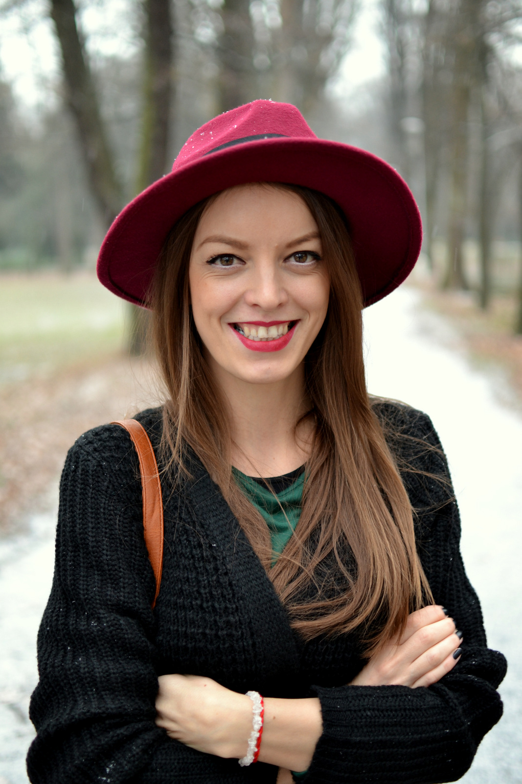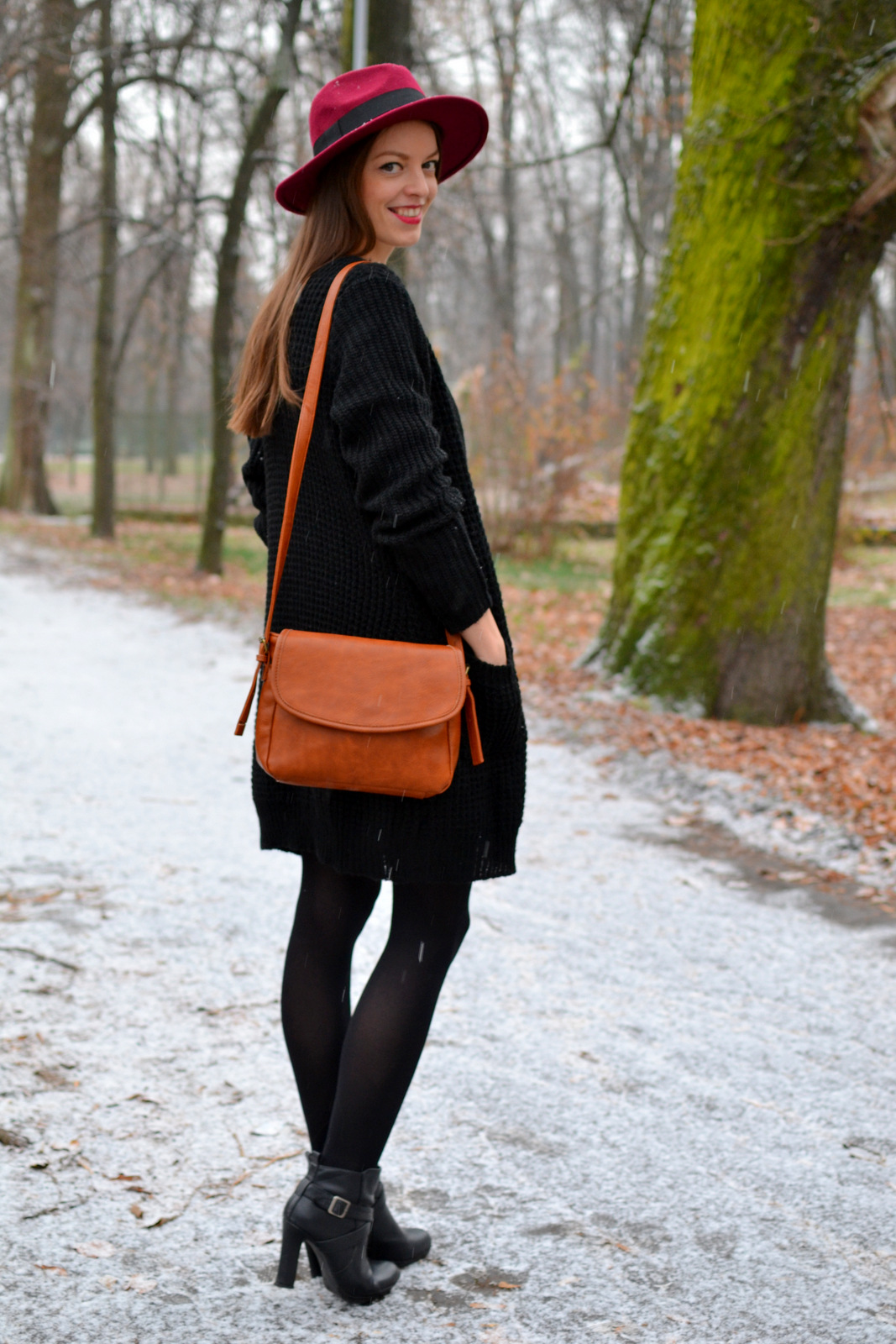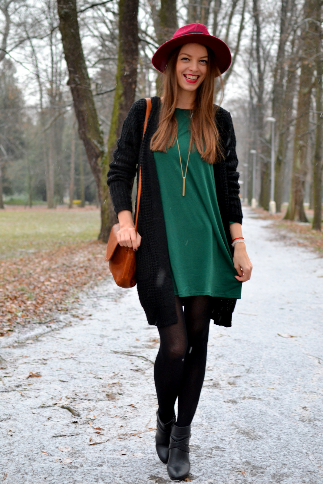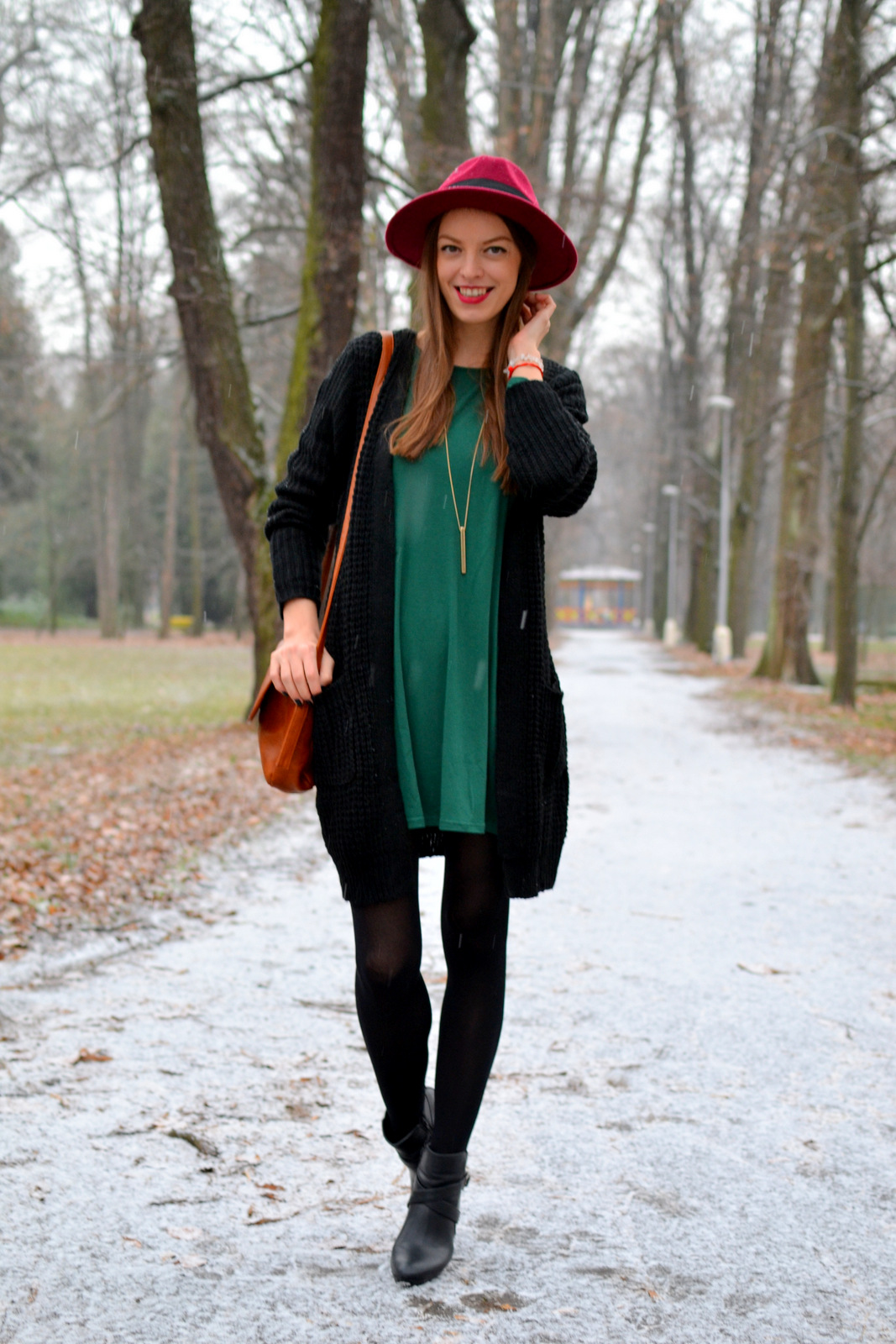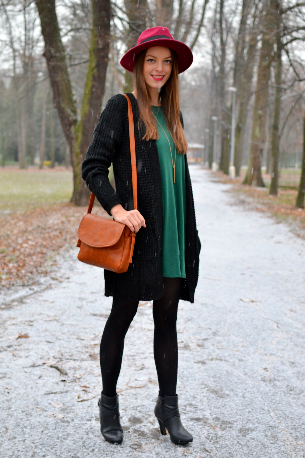 dress: HERE cardigan: HERE bag: HERE hat: HERE tights: f&f boots: humanic necklace: h&m lipstick: chanel
