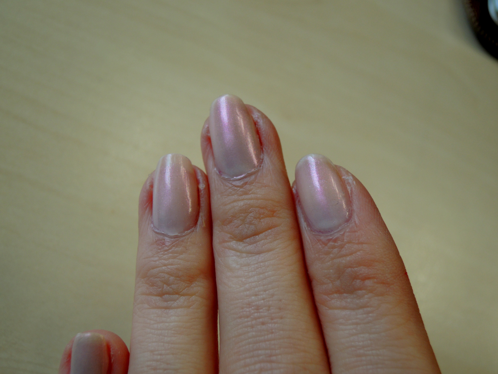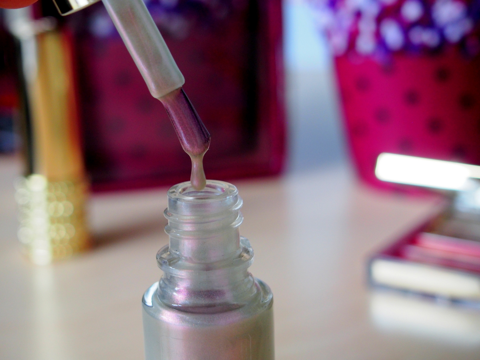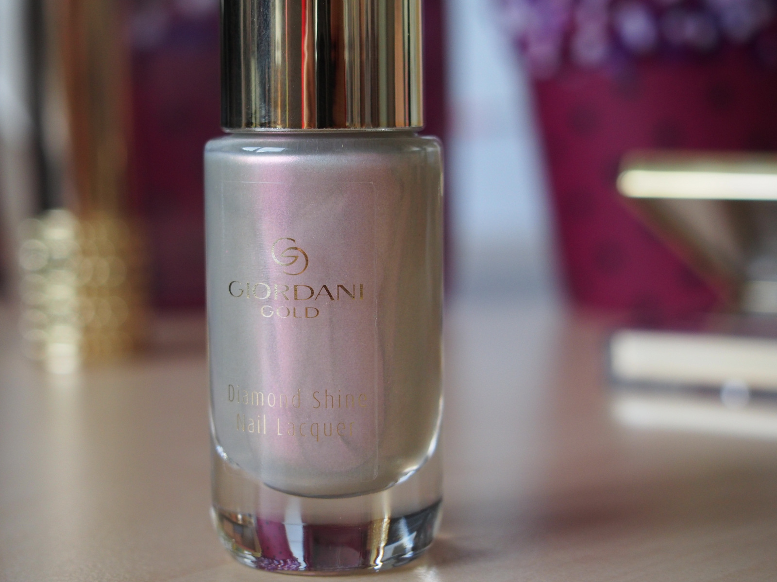 Lak na nechty GG má nádhernú perleťovú farbu, ktorá má odlesky fialovej, ružovej a perleťovej. Laky GG mám veľmi rada, majú perfektný štetec, ani široký ani tenký, konzistencia je takisto veľmi dobrá ani vodnatá, ani príliš hustá. Lak sa jednoducho nanáša a môžete ho nosiť ako vrchný lak, na akýkoľvek farebný lak na nechty alebo si ho dať len tak na čisté nechty ak práve nemáte chuť na červené nechtíky ale nechcete aby boli vaše ruky “holé” bez laku. Mne vydržal 5 dní t.j. celý pracovný týždeň, čo je úplne perfektné. Odporúčam je to naozaj taký univerzálny lak na nechty, ktorý sa hodí ku všetkému a na každú príležitosť.