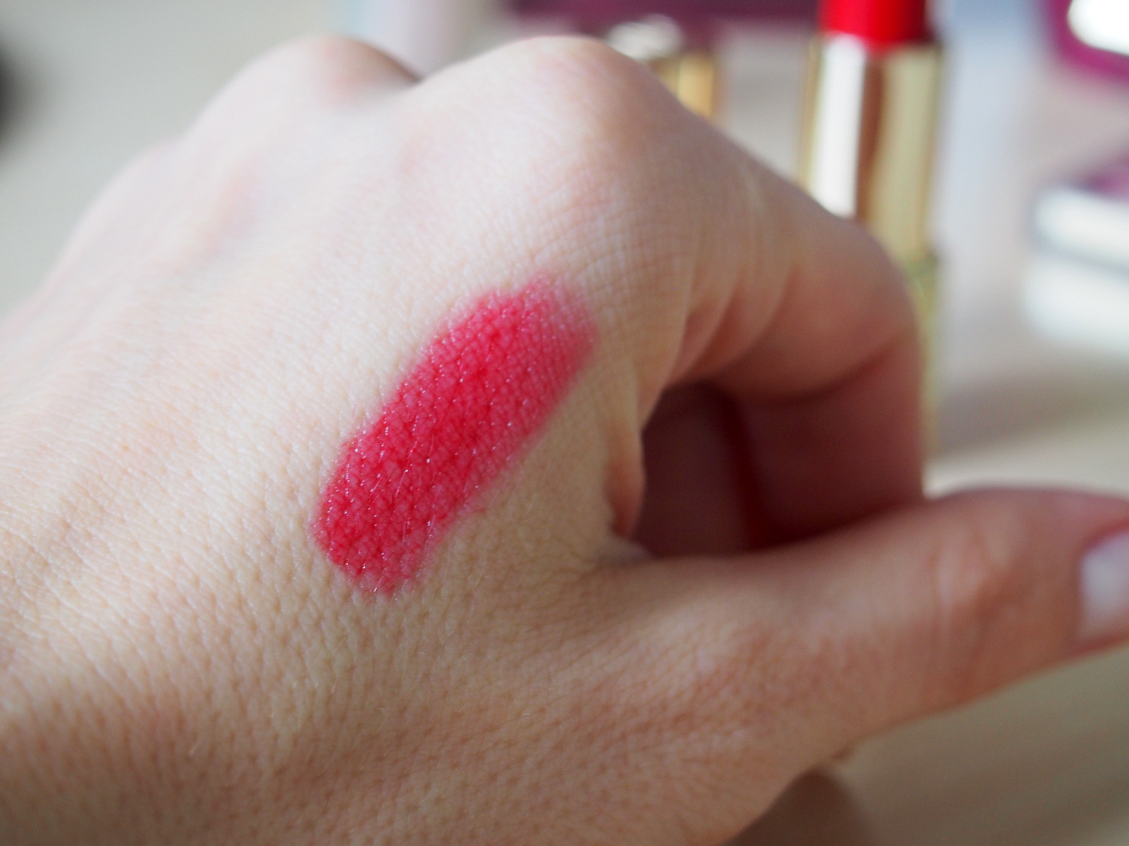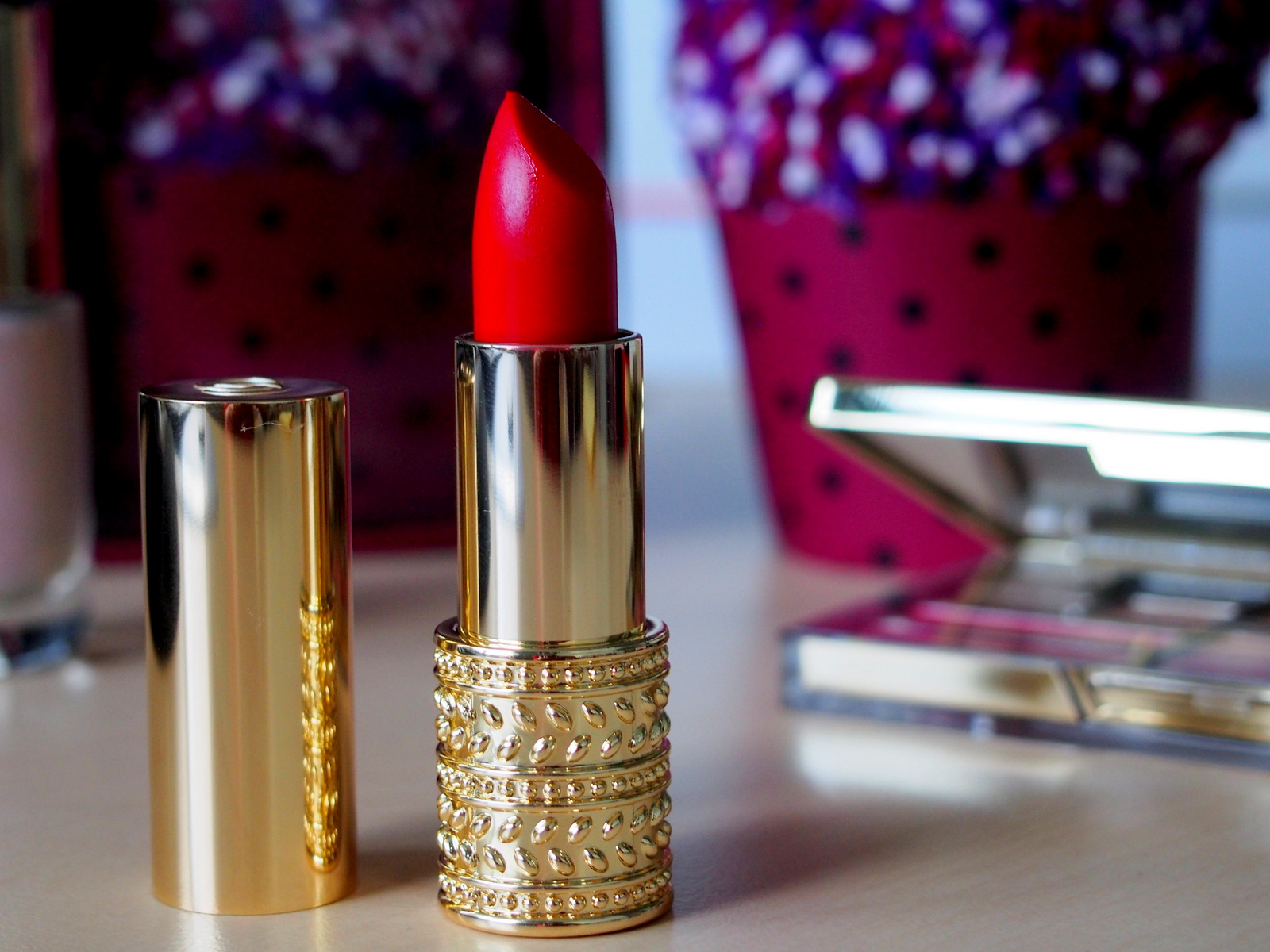 Rúž GG ma očaril svojim obalom. Nádherný dizajn, leský pozlátený obal a vyrazené GG na vrchnáčiku. Po otvorení som bola nadšená ešte viac. Objednala som si rúž v odtieni “red attraction”, v ponuke je v desiatich krásnych odtieňoch. Rúž má krásnu sýtu farbu a hydratuje ako balzam na pery. Rúž nemá silnú pigmentáciu (to si treba uvedomiť vopred) aj keď sa to pri pohľade na tú krásnu farbu môže zdať. Ak chcete silno pigmentované rúže tak vyskúšajte The One matné rúže alebo ceruzku GG, ktorá vám naviac vydrží celý deň. Rúž môžete používať celý deň, pery zostanú hydratované, hebké, nebudú vysušená a naviac budú mať krásnu farbu. Vhodné na bežný deň, keď nemáte čas na perfektné narúžovanie pier (mne to vždy trvá aj 7 minút, kým sú pery dokonale narúžované) 🙂 🙂