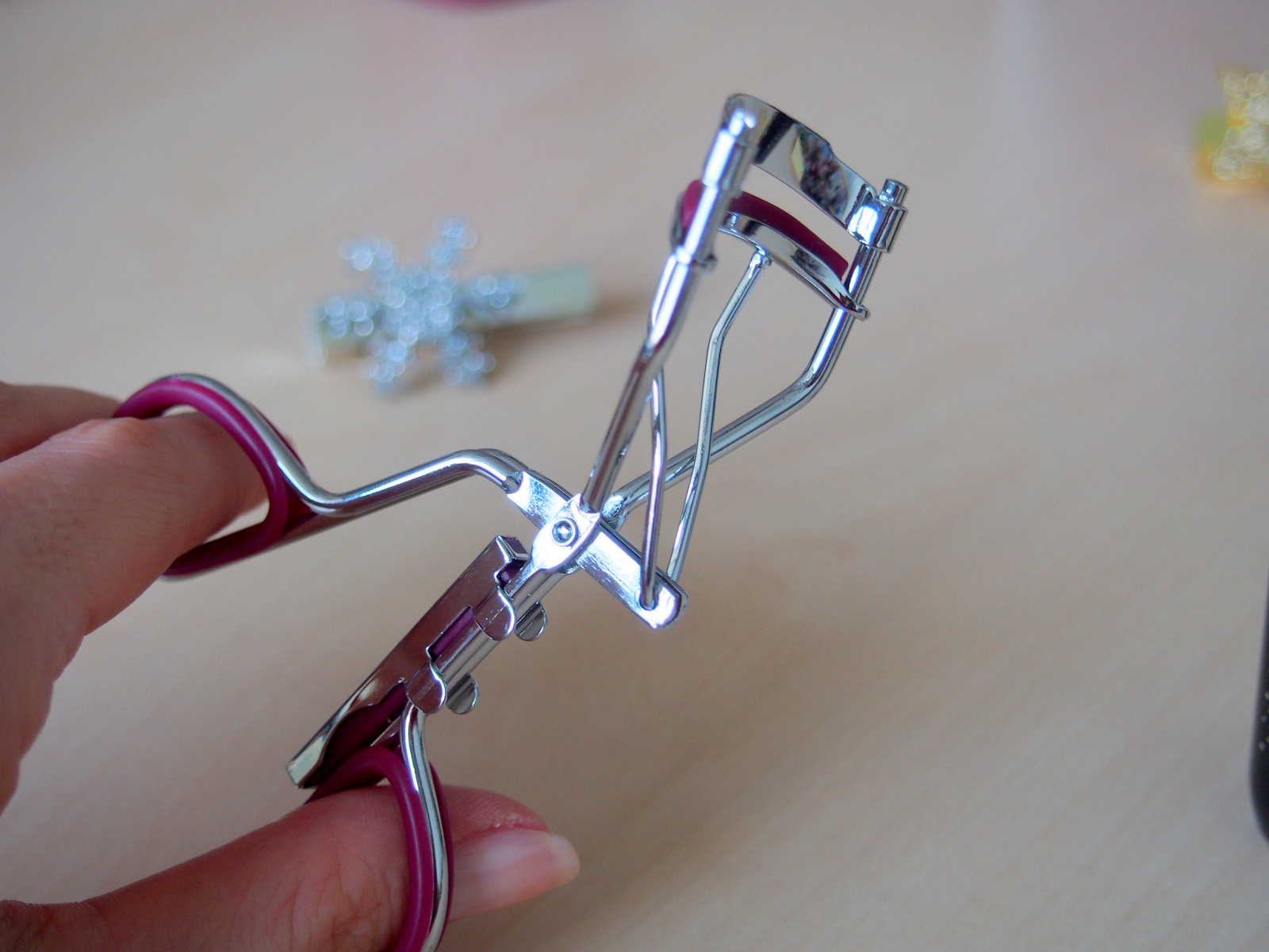 Klieštiky sú klasických rozmerov, ktoré kúpite v každej drogérii. Tieto majú naviac pogumované úchytky (alebo ako to nazvať), vďaka ktorým sa s nimi lepšie manipuluje a nekĺžu sa ak máte napríklad nakrémované ruky (čo je stále môj problém). Guma na držiatkach má ciklamenovú farbu a rovnakej farby je aj guma, ktorá je vo vrchnej časti klieštikov, ktorými sa natáčajú mihalnice. Naviac je ku klieštikom pripevnená aj jedna náhradná.Môžete ju nechať upevnenú na klieštikoch, alebo odložiť na poličku (len aby ste ju potom našli) 🙂 Guma je mäkká čo je výhoda pri natáčaní mihalníc. Stačí pár stlačení a je to. Veľmi sa mi páči farebná kombinácia. Klieštiky padnú presne do ruky a mihalnice pekne natočia.