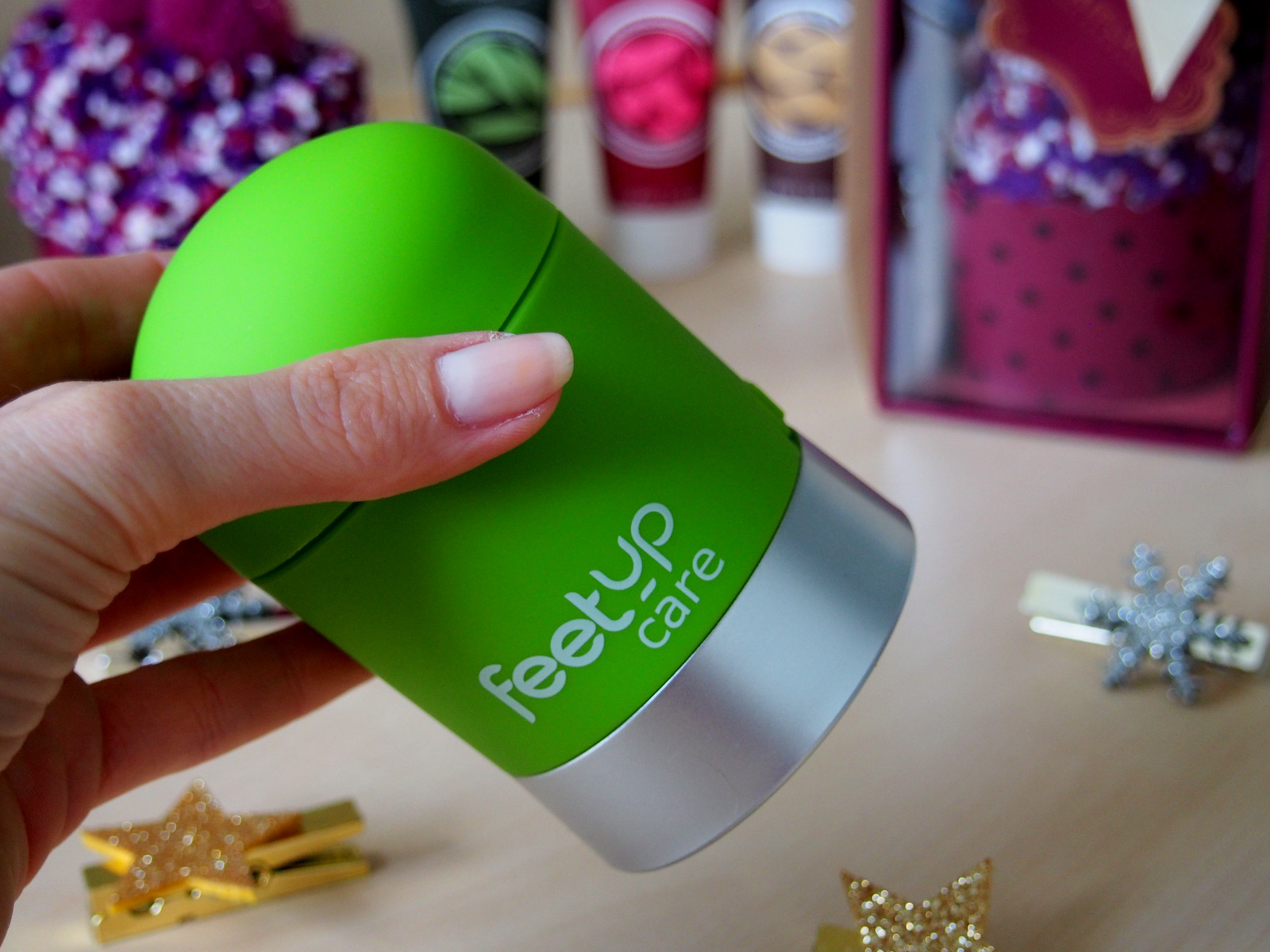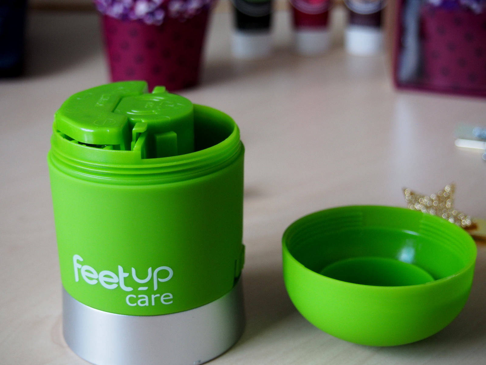 Na tento nekozmetický produkt som sa veľmi tešila. Nie že by som mala príliš hrubú kožu na pätách, ale ako každá žena aj ja chcem mať pekné chodidlá … aj keď nie je leto a neukazujem ich tak často 🙂 Výrobok stojí 25 eur, čo je asi polovica ceny produktov, ktoré sú dostupné na trhu a v drogériách. Feet up care dostanete v krabičke aj so štetcom na čistenie, náhradnými leštiacimi plochami a šikovným vrecúškom. Do feet up idú štyri baterky, ktoré nie sú súčasťou balenia. Dostanete takisto aj návod, ten som veľmi ocenila, lebo som nevedela ako to presne funguje. Keď som konečne všetko nastavila podľa návodu, dala som baterky s veľkým očakávaním som priložila feet up ku chodidlám. Hliníková hlavica (pílnik) funguje skvele ale keď som nasadila leštiacu plochu zastavil sa , odtiahla som a opäť išiel hmmm čo z toho vyplýva? Leštiacu plochu musíte prikladať na chodidlá jemnejšie ako hliníkovú inak zastane a nebude leštiť 🙂 Aké máte s ním skúsenosti vy? Najprv som si myslela, že je to v baterkách, ale nie je tú leštiacu plochu musíte jednoducho priložiť trošku citlivejšie ako hliníkovú, ktorá má lepšiu silu.