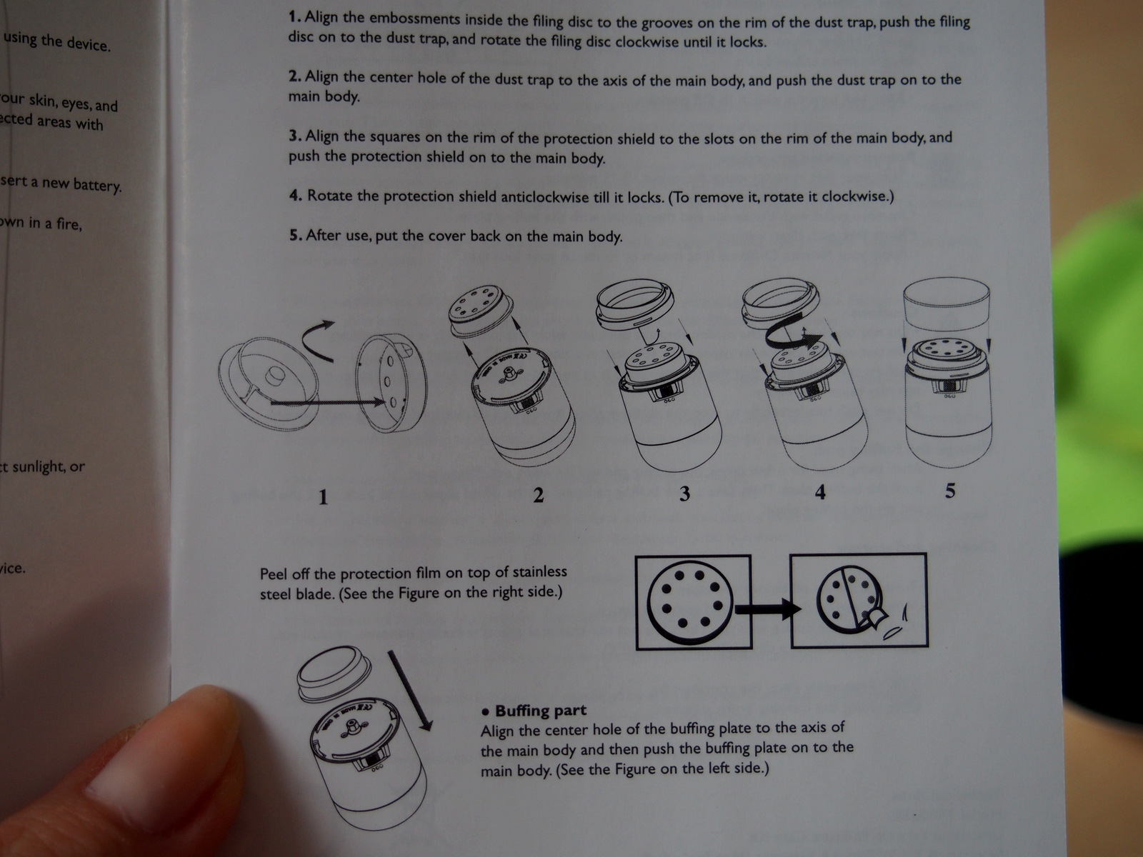 Pedikúrová sada na batérie. Tvorí ju plastové telo prístroja, pilníkový disk z ušľachtilej ocele, 6 leštiacich platničiek, polyesterové vrecko a čistiaca kefka. Prístroj vyžaduje 4 x AA (1.5V) batérie (nie sú súčasťou balenia.) CE certifi kát. Návod na použitie súčasťou balenia.