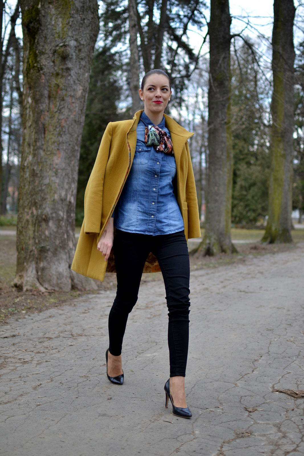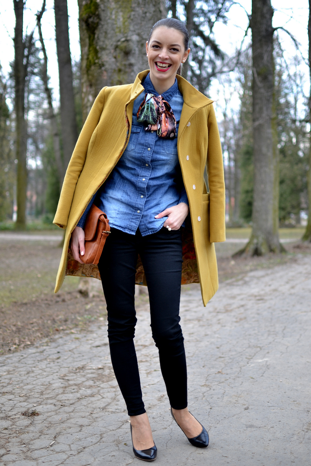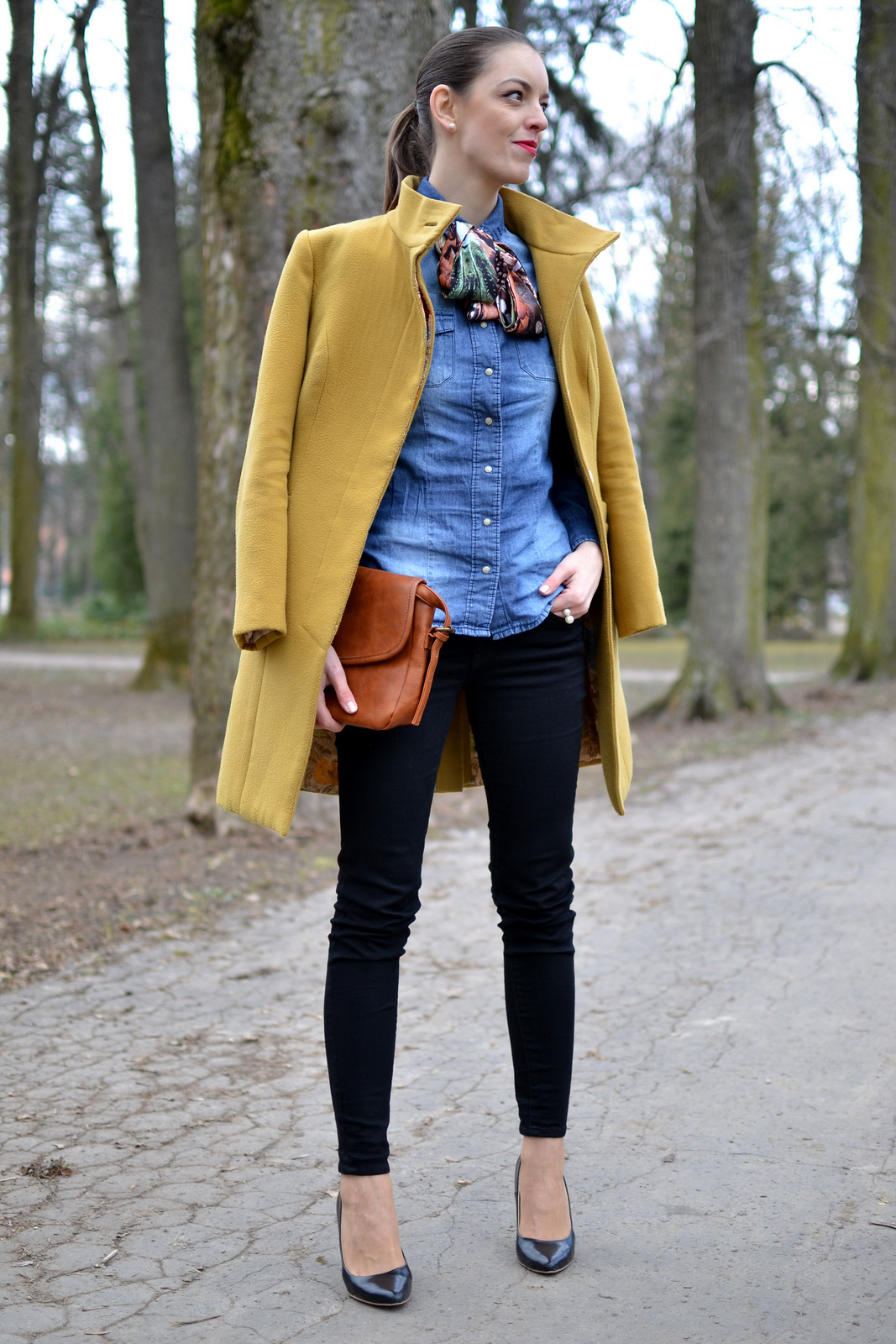 coat, silk scarf: Ivana Klepáčová (HERE) shirt: house shoes: h&m bag: shein (HERE) accessories, lipstick, make-up: oriflame