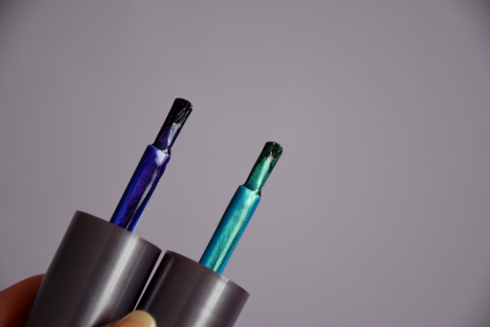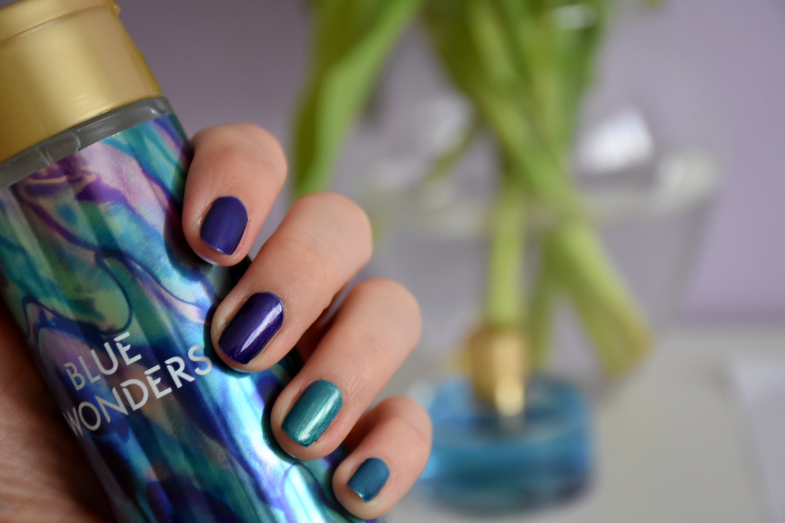 Farby mora? Nech sa páči, nové odtiene The ONE lakov na nechty vám to umožnia. V ponuke je päť krásnych farieb. Ja som neodolala azurovo modrej a modro fialovej. Vo flaštičke vyzerali obidva odlišne, keď som ich začala nanášať na papier, zdali sa mi obidva rovnaké, no neboli 🙂 Naniesla som ich na nechty a jeden je krásne modro-zelený a druhý tmavomodro-fialový. Môžete ich naniesť v jednej alebo v dvoch vrstvách pre väčšiu intenzitu farby. Mne sa páčili aj v jednej aj v dvoch vrstvách. Dokonca som ich jeden deň aj skombinovala, štyri nechtíky jedným lakom a jeden druhým. Vyzeralo to pekne a aj sa pekne dopĺňali. Lak The ONE už poznáte z predchádzajúcich recenzií, takže iba zopakujem, že má hrubší aplikátor, na ktorý sa naberá veľa laku, takže ho treba najprv trošku otrieť o flaštičku, farby sú nádherné, trvácne, mne vydržia aj 4-5 dní bez poškodenia a jednoducho sa odlakovávajú (nebudete mať celý modrý prst ako pri iných lakoch). Ak máte viac času, môžete z týchto krásne zafarbených lakov vytvárať aj rôzne obrazce 🙂