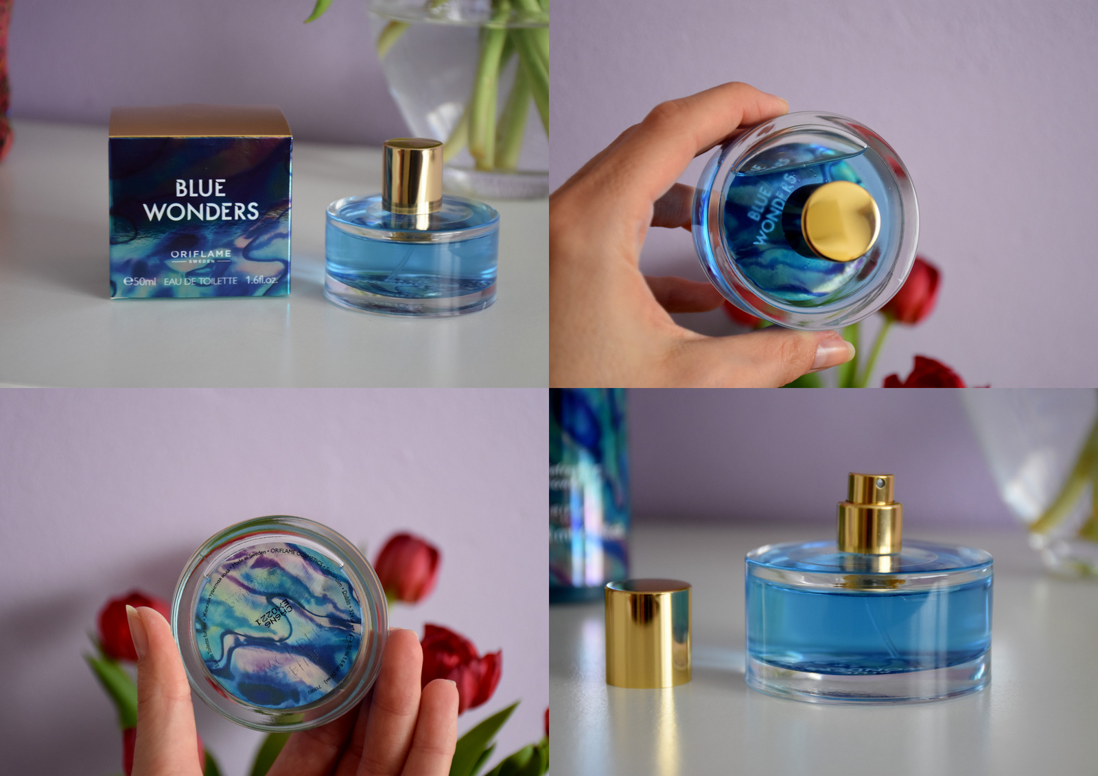 Toaletná voda má unikátny flakón. Väčšina parfémov má svoje meno niekde na strane flakóna, ale táto voda má etiketu s menom nalepenú na dne tak, že názov vidíte cez hornú časť 🙂 Je to veľmi zaujímavé riešenie. Flakón je inak číry, hladký a okrúhly. Aplikuje sa rozprašovačom. Toaletná voda Blue Wonders má výraznú vôňu, ktorú by som definovala ako drevito sviežu (neviem či taká kategória existuje). Cítim tam výrazné tóny spomínaného morského elixíru, ktorý mi pripomína letnú dovolenku, ale takisto aj tóny ambry. Dočítala som sa, že vôňa ambry je sladká, trochu korenistá a medová. Viete si to predstaviť? Je to ťažké opísať, ale keď som prvý krát ovoňala Blue Wonders toaletnú vodu, tak som si povedala, že by som ju kategorizovala ako unisex vôňu t.j. vhodnú aj pre pánov aj pre dámy. Ako som už písala vyššie pri krémoch, je to niečo iné ako som si zvykla objednávať doteraz. Doteraz to boli kvetinové, ovocné vône, ktoré som mala chuť vypiť, táto je trošku ťažšia, ale je to naozaj príjemná zmena, keď nechcete voňať ako jahody 🙂 Určite vyskúšajte, len pozor hrozí, že budete mysľou častejšie na letnej dovolenke ako v práci 🙂 🙂