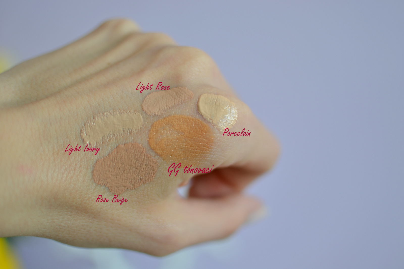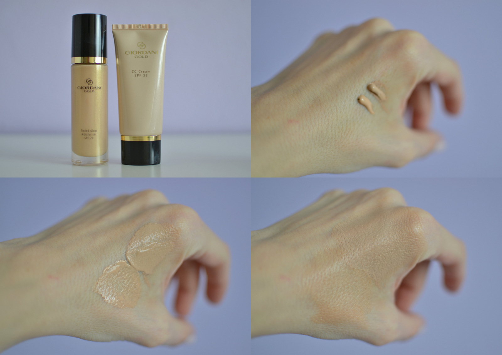 Giordani Gold prináša novinku v podobe tónovaného hydratačného krému. Je to skutočne ideálne riešenie na leto, pretože je to 2v1. Hydratačný krém, ktorý dodá pleti potrebnú hydratácia počas horúcich dní a k tomu obsahuje aj pekný odtieň hnedej farby, ktorá sa podobá na krycí krém, ale nie je. Tento krém nemá kryciu schopnosť. Obsahuje trblietavé čiastočky, ktoré pleť rozjasnia. Farba jej dodá jemný nádych opálenia a drobné čiastočky pleť rozžiaria. Nebojte sa nebudete ako disko guľa, je to decentné rozžiarenie 😉 Naozaj je to veľmi pekné, len si treba uvedomiť, že to nie je krycí krém, aj keď na prvý pohľad vyzerá rovnako ako krycí krém. Je v rovnakom balení, aplikuje sa pumpičkou a opäť je v elegantnom obale. Krém ma opäť zaujímavú vôňu čerstvosti, pravdepodobne je trošku parfumovaný. Kedže nemám doma profi foto štúdio neviem veľmi dobre zachytiť jeho farbu, ale snažila som sa na poslednej fotke, kde môžete vidieť rozdiel medzi krycím, ktorý napríklad prekryl aj drobné pehy a znamienka, a tónovaní krém, ktorý pleť rozžiari. Pre lepšiu predstavu som krém porovnala so všetkými odtieňmi krycieho krému s minerálny GG, ktorý som mala doma 🙂 Ako vidíte na prvý pohľad vyzerá naozaj tmavý, ale pozrite na poslednú fotku na pleti, ako sa krásne rozotrel a prispôsobil farbe pleti. Ja používam Light Ivory a  Porcelain, na striedačku, takže tie svetlejšie odtiene. Naozaj sa krému nebojte a nezľaknite sa príliš tmavej farby na ruke 🙂 Krém pokožku hydratuje počas celého dňa, nemala som žiadny pocit suchej pokožky alebo príliš  mastný pocit. Krém sa vstrebe, zanechá na pohľad opálenú a prežiarenú pokožku a naviac pekne vonia a zanecháva hladkú pleť. Viem, že sa opakujem, ale tá hebkosť produktov Oriflame je nadprirodzená 🙂 Ak by som hydratačný krém porovnala s CC krémom GG, ktorý mám takisto doma, je tam opäť veľký rozdiel. Obidva majú veľmi podobnú konzistenciu a dokonca aj farbu, ale opäť je rozdiel v krytí. CC krém pokožku zjednotí a Tónovací dodá žiarivý a zdravý vzhľad. Takže ak chcete na leto menej produktov odporúčam tónovaný hydratačný krém (táto novinka), ak chcete aj prekryť malé nedostatky tak siahnite po CC kréme GG a ak chcete veľkú kryciu schopnosť použite krycí krém GG. Zatiaľ najvyššiu kryciu schopnosť má krycí zmatňujúci krém The One. Tak verím, že si vyberiete správne, ale osobne si myslím, že pokožku v lete nemusíte zaťažovať a použiť práve hydratovaný tónovaný krém GG.