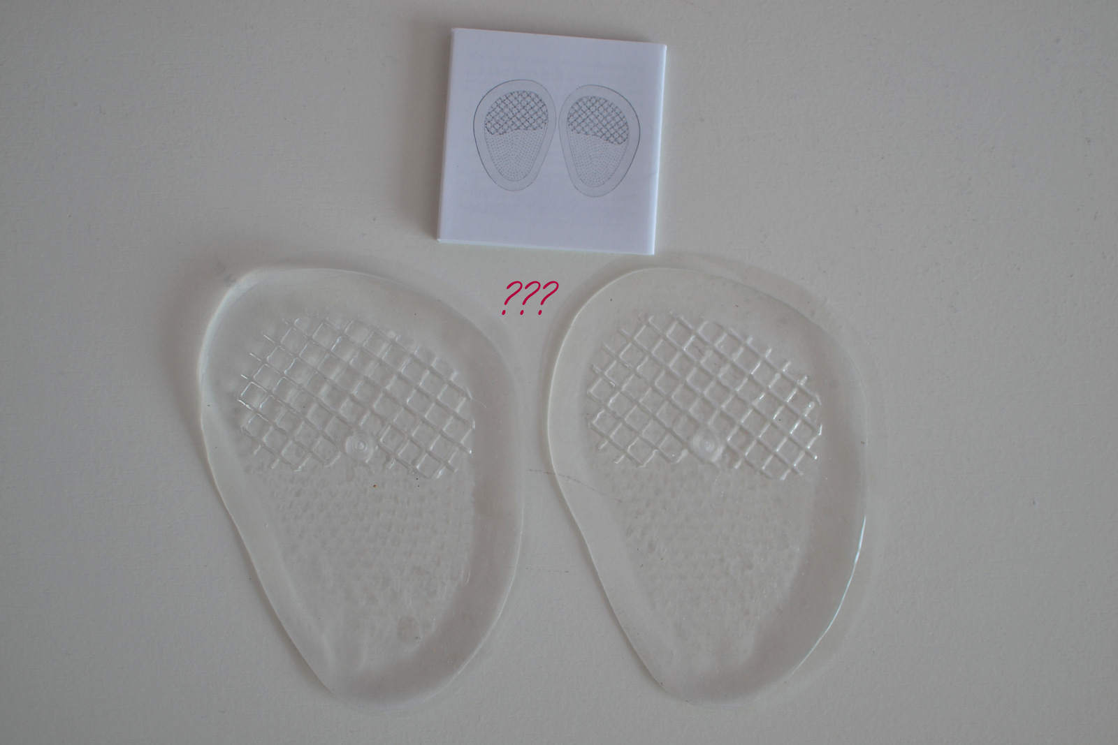 Silikónové vložky do topánok majú priesvitnú farbu a teda sú takmer neviditeľné. Z jednej strany sú lepivé s ochrannou fóliou. Fóliu stiahnete a prilepíte na miesto, kde chcete vložky umiestniť. Z tejto strany sú hladké. Z druhej strany majú vložky mriežku a bodky, ktoré chodidlá príjemne masírujú. V prednej časti sú trošku širšie a hrubšie a časť, ktorá má ísť smerom k päte je užšia a tenšia. Po prilepení vložky držia na mieste a dajú sa aj prelepiť do iných topánok, preto nevyhadzujte odlepenú fóliu. Pred nalepením si však dajte pozor aby bola topánka čistá bez čiastočiek prachu alebo kamienkov. To by ste už viac krát vložky nemohli použiť. Jediný “problém” je, že sa mi zdajú, že sú obidve vložky rovnaké t.j. do pravej topánky. Ja som si vložky nalepila do najvyšších a najnepohodlnejších letných sandálov, ktoré doma mám. Razom sa stali pohodlné a dalo sa v nich zvládnuť aj viac krokov ale len do auta a z auta 🙂 Túto pomôcku oceníte aj do lodičiek, na letnú svadbu, na oslavu alebo dlhú noc na vysokých topánkach na firemnej oslave 🙂 Chodidlá nepália a povrch ich premasíruje.