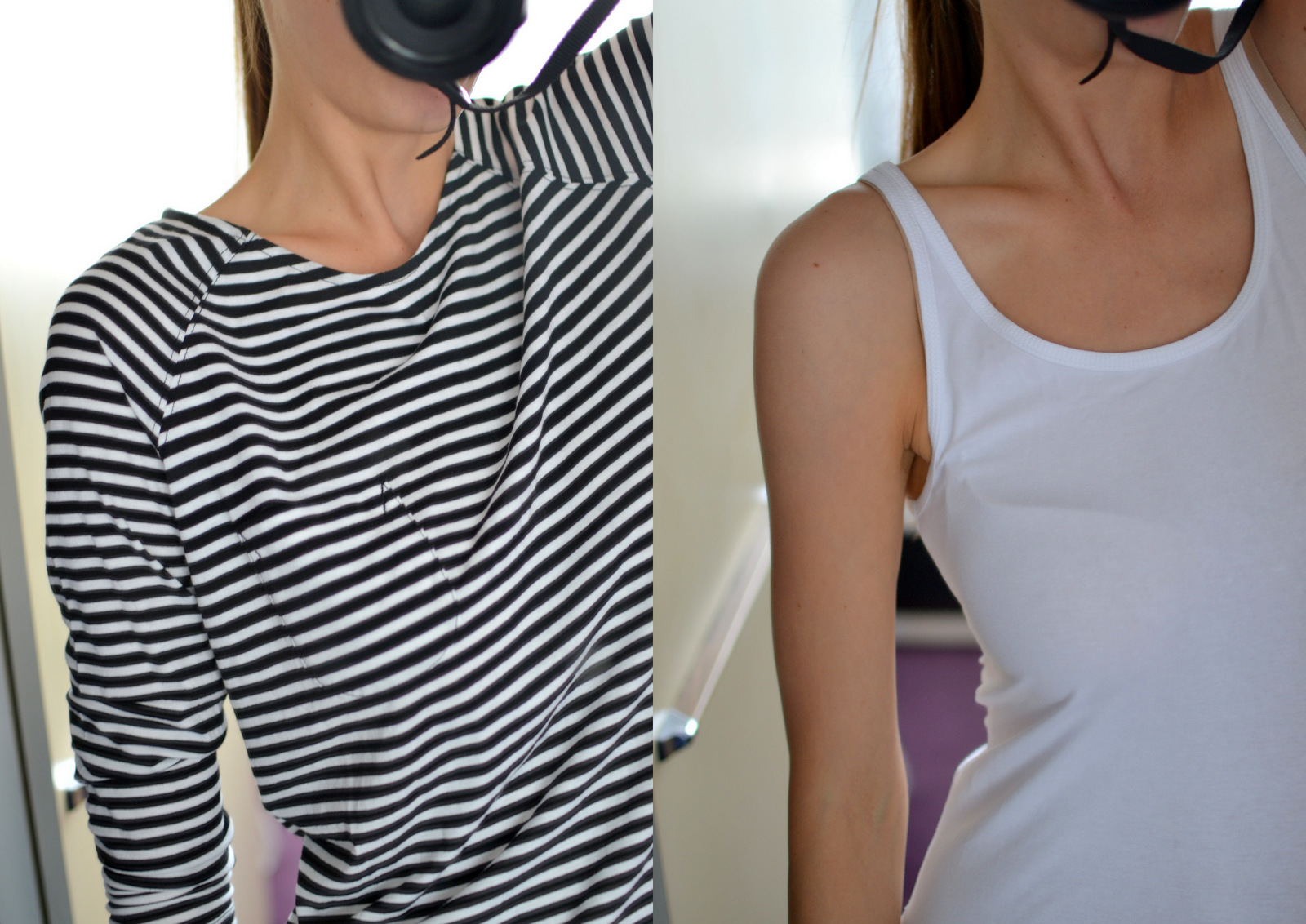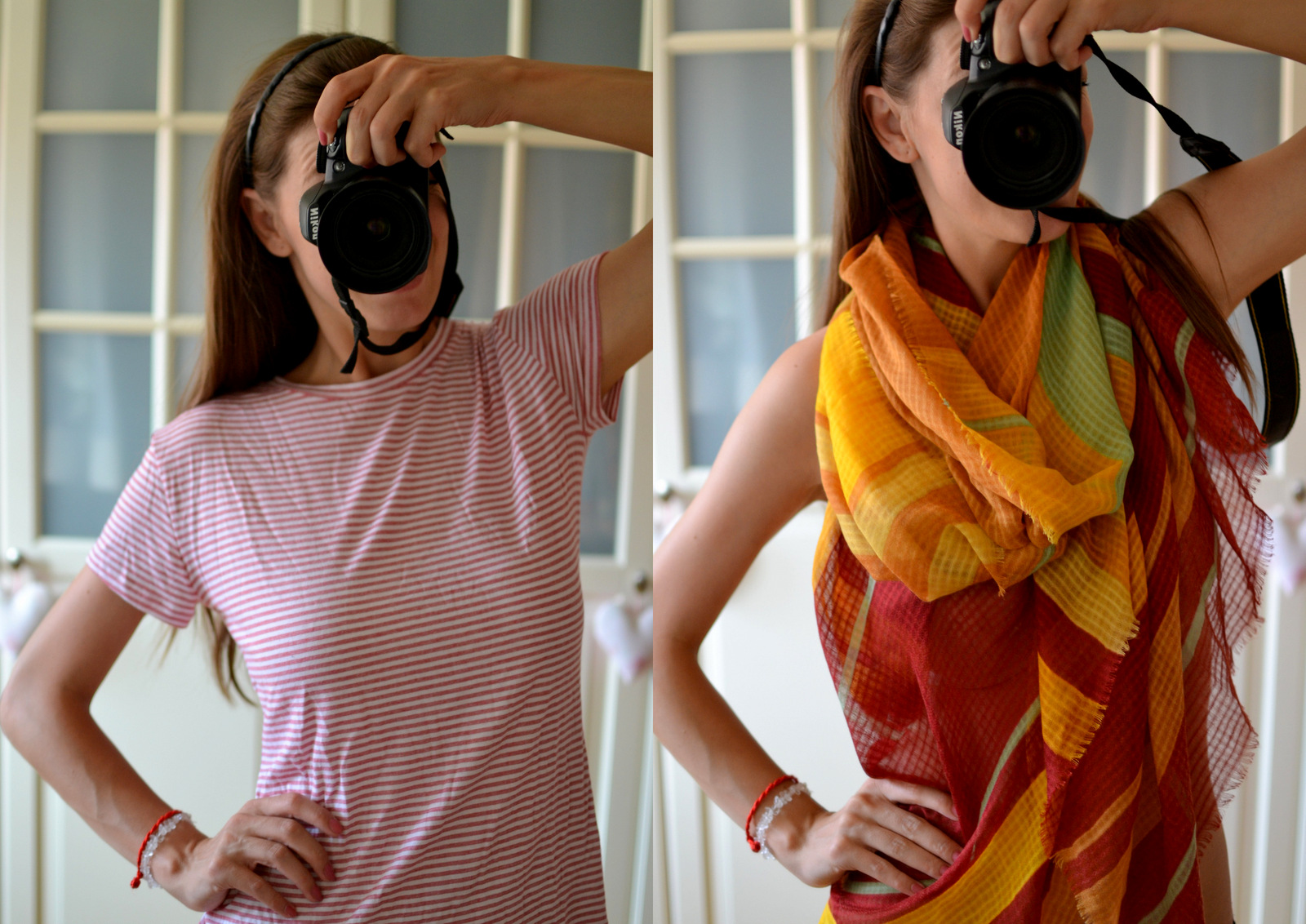 Výpredaje využívam naozaj veľmi zriedka, ale mala som divnú náladu a chcela som vyskúšať tip, že nakupovanie je lacnejšie ako psychiater a ono to fakt funguje :DDDD V H&M som si kúpila milionte pásikavé tričko s 3/4 rukávom, ktoré je z fajn materiálu a hodí sa do 20 stupňových teplôt (keď vám je v tričku bez rukávov zima a vo svetri teplo), biele tielko, ktoré budem asi nosiť na jógu alebo doma. V lidli som si kúpila kraťasky a pyžamo. Myslím, že pyžamo stálo 8 EUR a kraťasy 4 EUR. Hneď ako som uvidela bedrové plavky musela som si ich kúpiť. Z minulého roka som mala podobné v čiernej farbe a teraz som si dokúpila aj pásikavé. Po návrate domov som zistila, že pásikavý vrch, ktorý mám asi 2 roky starý vplyvom chlóru, mora a všetkého zožltol, a teda sa nedajú nosiť spolu pásikavé a čierne kombinácie :-/ Tak som si v Nemecku dokúpila aj pásikavý vrch, takže teraz môžem mať buď celopásikavé alebo celočierne plavky alebo ich kombinovať 🙂 Plavky neboli v zľave, vrch stál 15 EUR spodok asi 8 EUR. A keďže pásikov nie je nikdy dosť, v Zare v DE som si kúpila za 4 EUR červené pásikavé tričko a takisto v Zare, veľkú šatku, ktorá tvorí super kombináciu s bordovými topánkami 🙂 Druhú krásnu šatku ste videli v oriflame článku. Je saténová, vhodná na aktuálne obdobie, tá zo zary musí počkať na jeseň 🙂