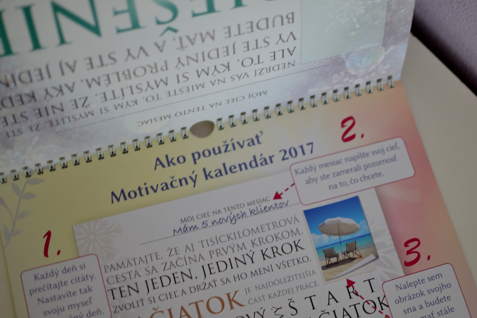 A je to tu, nový motivačný kalendár na rok 2017 si môžete objednať práve teraz za super ceny 🙂 Ja som si vybrala stolový a nástenný. Stolový budem mať doma na stole a nástenný si zavesím do kancelárie, aby som mala vždy pred očami to čo síce už viem, ale často sa mi stáva, že na to zabúdam a upadám k negatívnym myšlienkam. V ponuke nájdete aj motivačný diár, ale ja ako každý rok dostanem jeden v práci, takže by som mala zbytočne dva. Všetky sú v českom aj slovenskom jazyku, len si dajte pozor, aby ste si kúpili ten správny 🙂 V tomto článku vám predstavím nástenný a stolový kalendár, aby ste vedeli, čo všetko v ňom nájdete a lepšie sa rozhodnúť pre kúpu 🙂