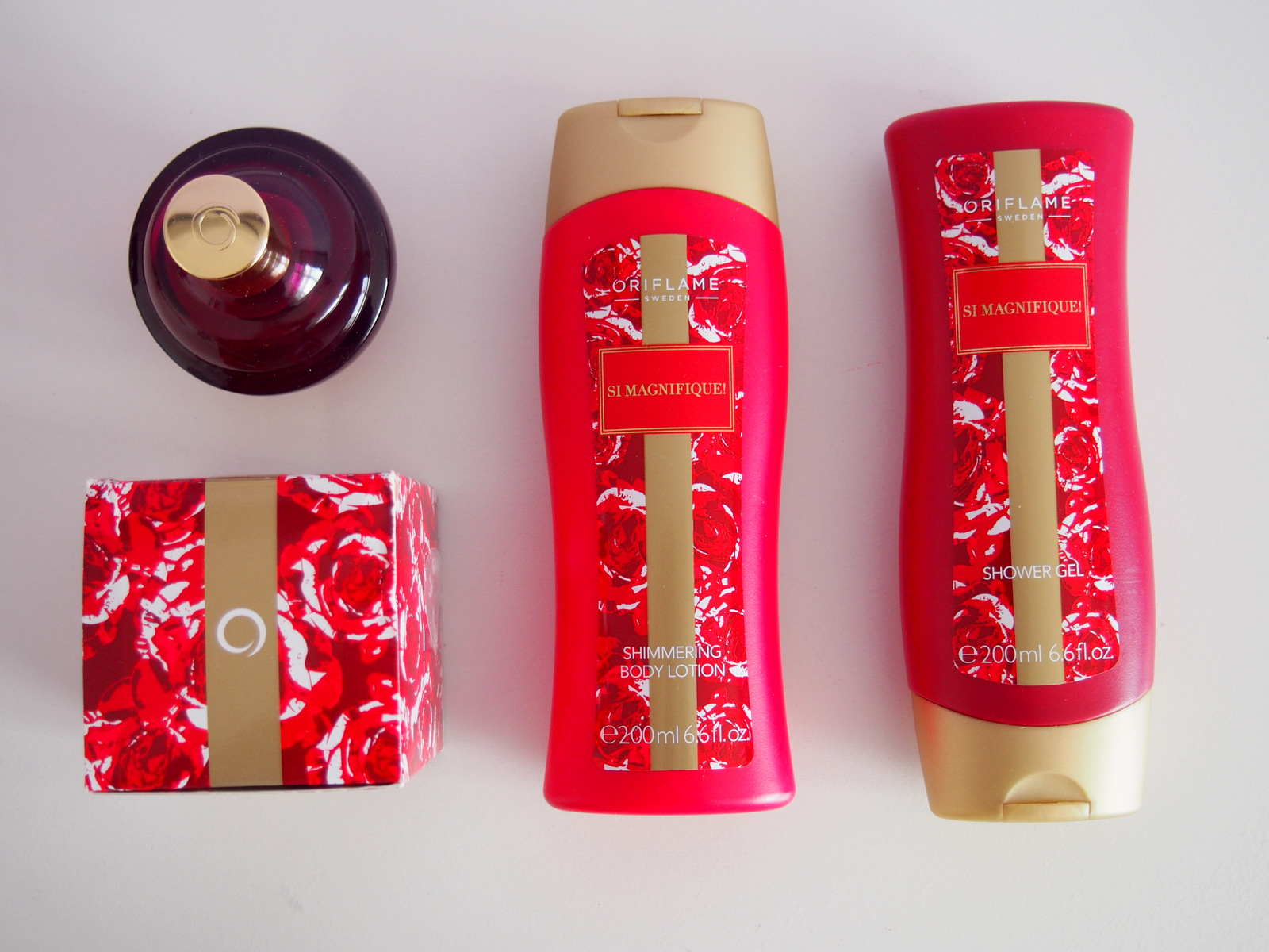 Prvý krok vo vrstvení vôní je spomínaný sprchový gél, potom telové mlieko a nakoniec je to parfém alebo toaletná vôňa v kombinácii s dezodorantom. V prípade Si magnifique! môžete vôňu navrstviť až v troch krokoch. Sprchovací gél, telové mlieko a toaletná vôňa, ktorú môžete počas dňa obnovovať. Telové mlieko obsahuje drobné trblietky. Pokožka bude krásna lesklá a bude pôsobiť veľmi zdravo vďaka odrážania svetla na pokožke. Ale nebojte sa nie je to nič strašné a prehnane lesklé, nebudete ako disko guľa nebojte. Telové mlieko má opäť krásny obal a ešte krajšiu vôňu. Má ružovú farbu a hustejšiu konzistenciu. Veľmi dobre sa rozotiera, nevytvára žiadny mastný film na pokožke a vôňa nie je vtieravá. Pokožka zostala hydratovaná a hladká na dotyk. Jedna báseň 🙂