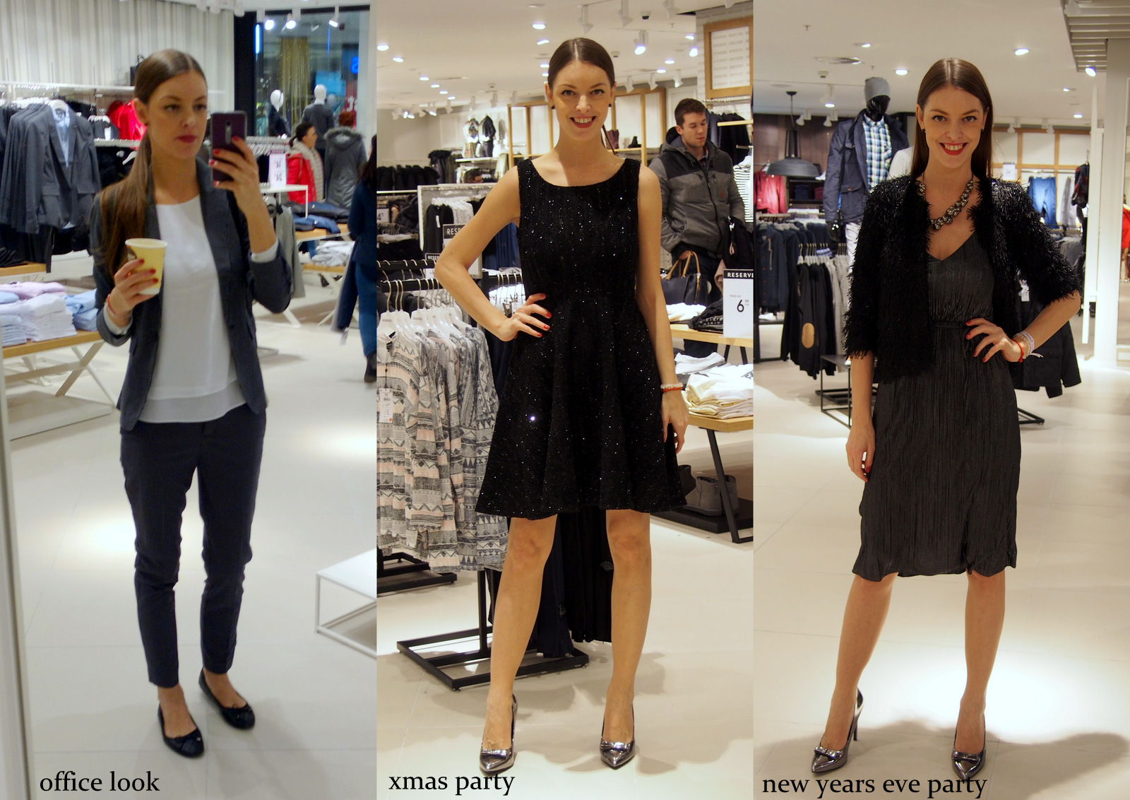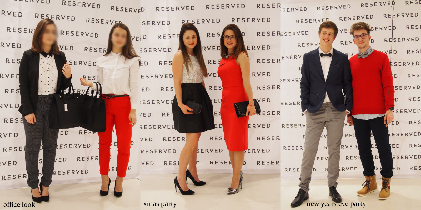 Prvé slečny, ktoré sme oslovili vo veľmi dlhom rade na pokladňu som hneď vyspovedala. Sú kamarátky a chodia na osemročné gymnázium. Na ich vek nebola táto téma práve najlepšia, ale ako vidíte zvládli to super. V podstate si outfit vybrali úplne samé, mňa sa už pýtali iba detaily, ktorá blúzka je lepšia a akú kabelku zvoliť. Nakoniec si výhru rozdelili. Na vianočnú párty sa zhodou okolností prihlásili sestry z rovnakého mesta ako prvé slečny. Dámy úplne presne vedeli, čo si chcú obliecť, téme sa veľmi potešili a pozrite sa ako im to pristalo. Opäť som poradila iba v maličkostiach ako doplnky a topánky. V tomto prípade rozhdovali likes na FB a vyhrala slečna v červených šatách. Na silvestrovskú párty som z davu oslovila, ako som spomínala, dvoch chalanov a opäť si jeden z nich vybral niečo červené 🙂 Doladili sme motýliky, vybrali správne veľkosti košieľ, nohavíc a topánok. Pri chalanoch sa opäť vedeli rozhodnúť pre jedného víťaza a preto si cenu opäť rozdelili. Myslím, že to dopadlo spravodlivo 🙂 Posledné dve fotky boli aj na FB.