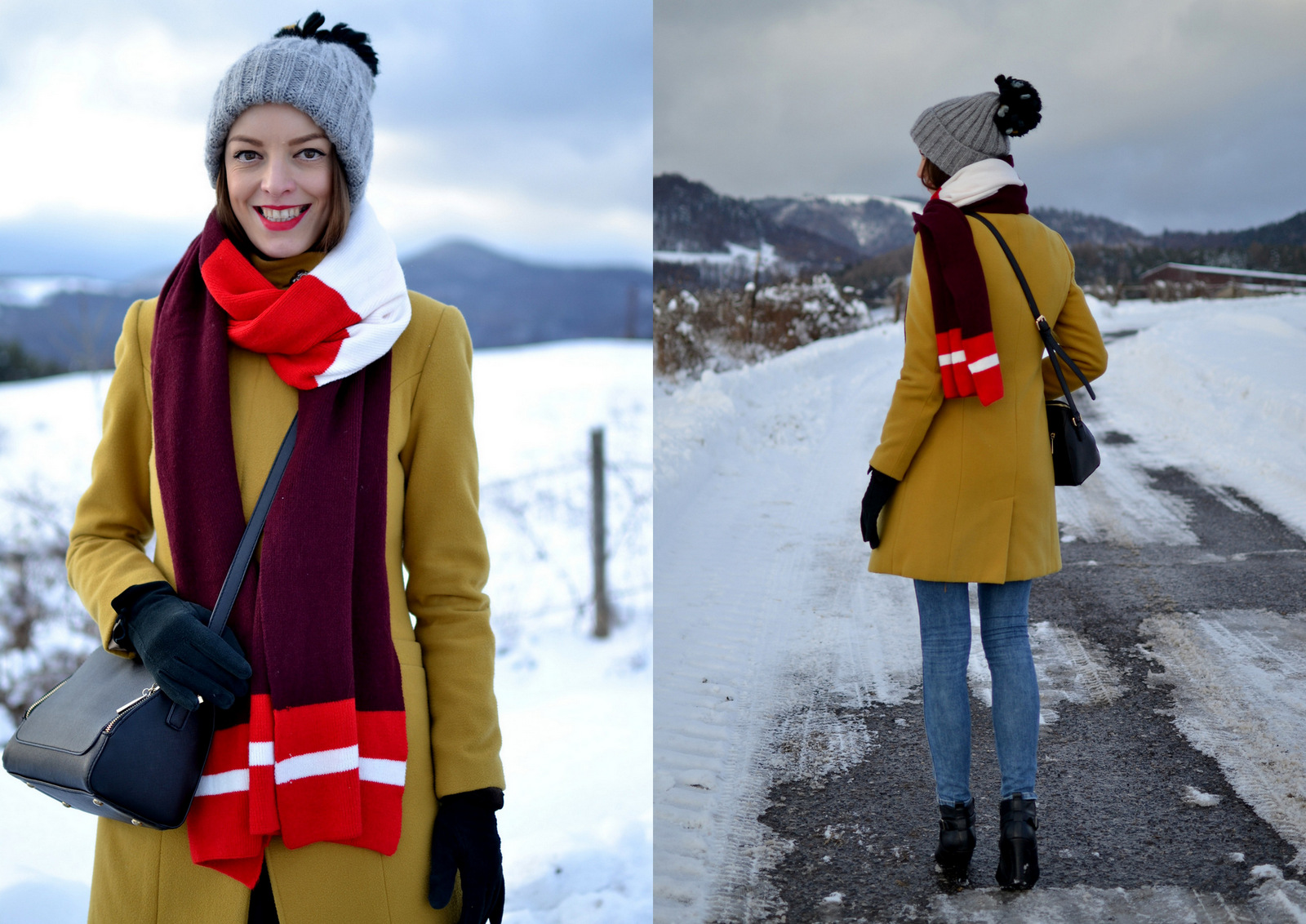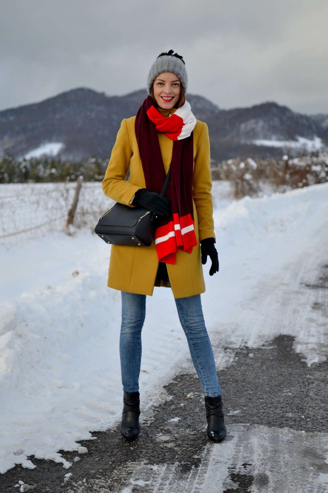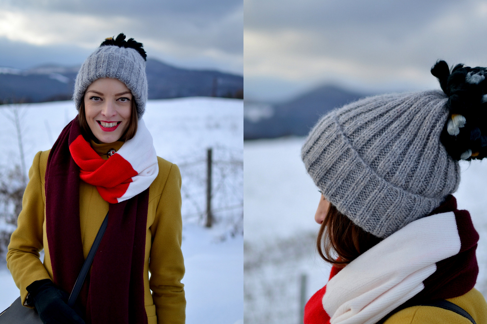 kabát: Ivana Klepáčová (kontakt) kabelka, rukavice: reserved rifle: camaieu čižmy: humanic čiapka, šál: zara