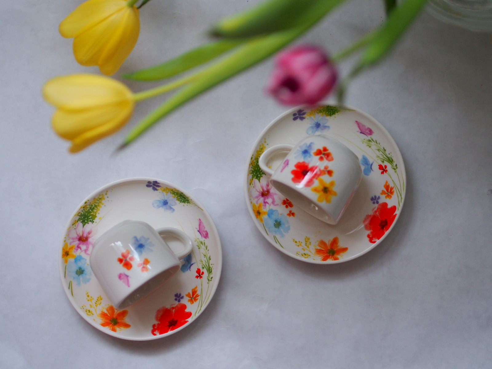 Marec je nie len mesiac knihy, ale aj mesiac prebúdzajúcej sa prírody a príchod jari. Preto v marci na blogu nájdete články zamerané hlavne na tému “knihy”, ale aj moje tipy ako si doma vytvoriť jarnú atmosféru. Prvý tip sú tieto rozkošné šálky z tchibo.sk. Keď ako som ich uvidela v katalógu, vedela som, že ich musím mať. Hneď ako prišla nová kolekcia, tak som sa veľmi potešila, pretože naživo vyzerajú ešte lepšie ako na fotkách. V tomto krásnom jarnom motíve boli na výber aj misky, hrnčeky na čaj, nádherný obrus, behúň, umelé kvetiny, vázičky, no ja som si vybrala malinké šáločky na obľúbené espresso. Teraz mám v práci tri šáločky a od radosti neviem, do ktorej ako prvej si urobím kávu. Mám to pekne rozdelené jedna je na rannú kávu a jedna na poobednú a tretia je na ďalšie ráno a takto ich pekne striedam. Druhú šáločku zo setu som si nechala doma. Takisto som vyskúšala aj novú kávu Davidoff café, takisto z tchibo, ktorá vonia nádherne a ešte lepšie chutí. Už sa teším, keď si budem môcť vychutnávať kávu na balkóne a vyhrievať sa na slnku. Kúpili ste si aj vy túto jarnú kolekciu? Myslím, že ju v niektorých predajniach ešte nájdete a určite aj na e-shope. Napíšte mi ako si privolávate jar vy 🙂 Btw. najprv som mala v pláne vypublikovať ich iba v new in článku, ale pozrite sa aké sú prudko fotogenické 🙂