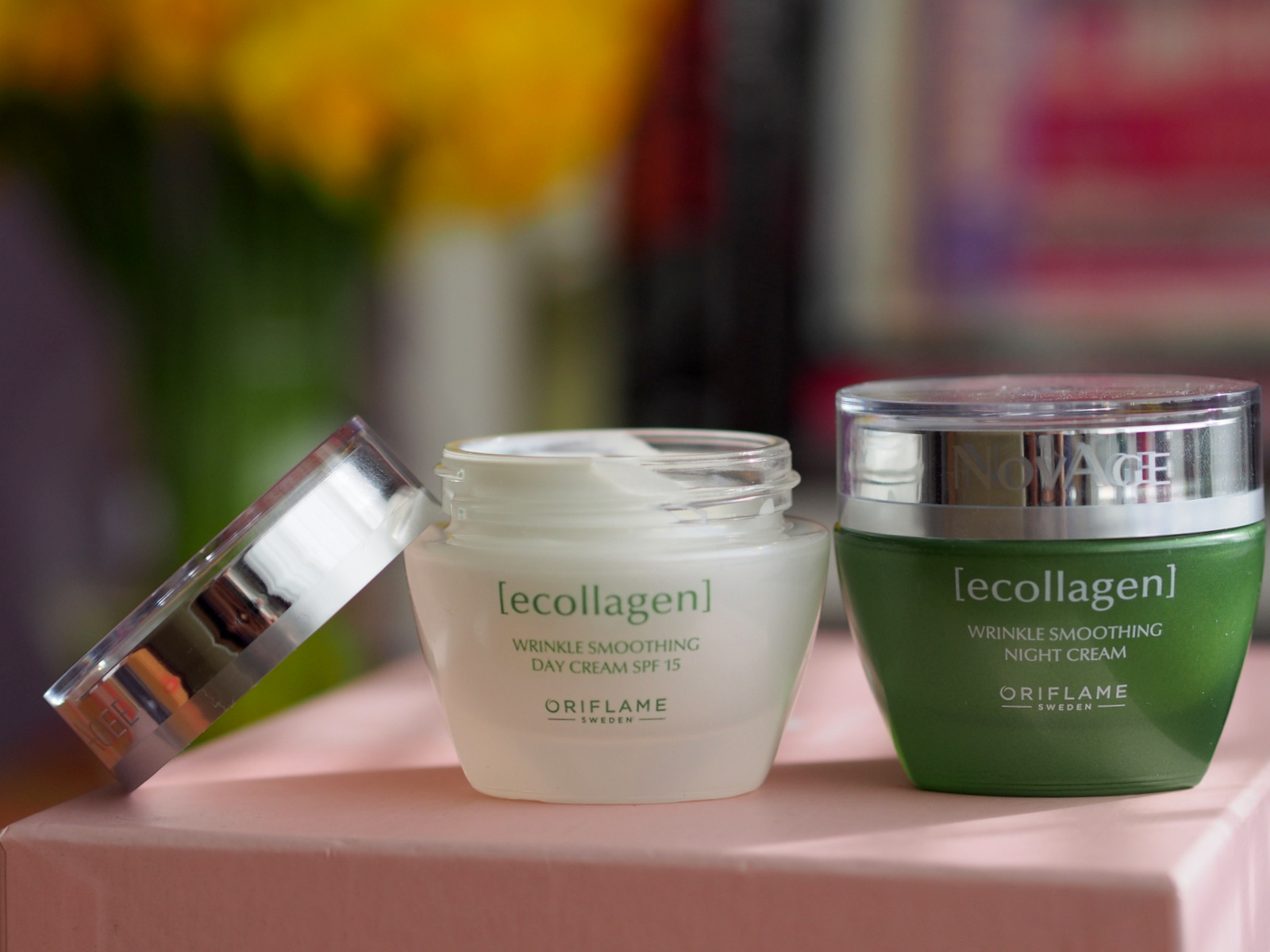 Priznávam, spolu s tridsiatkou som sa rozhodla prejsť aj na “vyššiu” radu krémov. Doteraz som používala True perfection, ktorý je určený na 20+ a má unavenú pleť hydratovať, zrelaxovať a odstrániť známky stresu. Túto radu som používala od prvého dňa ako vyšla v katalógu a úplne som si ju zamilovala. Preto som dlhšie váhala, či vôbec potrebujem niečo iné. Rozhodla som sa postupne prejsť na Ecollagen, ktorá bojuje s prvými vráskami. Nie že by som mala výrazné vrásky, ale ani ich nechcem mať výrazné. Pokožka bude čím ďalej viac ochabovať a strácať pružnosť, pevnosť a vrásky sa prehlbovať, ak samozrejme včas nezakročíme. Ecollagen sú krémy v zelenom obale. Už používam krém na oči a tonizačnú vodu a teraz už aj krémy. Keď porovnám true perfection a ecollagen tak zásadný rozdiel tam je na pocit už pri prvom siahnutí do krému 🙂 True perfection denný krém mal konzistenciu takého veľmi jemného až hodvábneho krému, ktorý vašej pokožke dodal pocit ako keby ste ju zabalili do bavlnky, skutočne. Zrazu ste mali chuť oddychovať a zakryť sa do kedy a relaxovať. Naozaj som mala pocit, že tým ako si krém rozotieram odchádza aj stres. Doslova som si to užívala. Ecollagen má o čosi ale naozaj len o malinko hustejšiu alebo pevnejšiu konzistenciu (to by ste museli cítiť, ťažko to úplne presne opísať), farba aj vôňa zostáva rovnaká, nevýrazná ale veľmi príjemná a vhodná na denné používanie. Nijako sa nevtiera ani neprekáža. Už z fotky môžete vidieť, že aj pri rozotieraní je to už vážna vec. Robím si srandu, len ja mám taký pocit pri tomto kréme, že už som dospelá :DDD rozumieme sa, však. Ako keď prvý krát držíte občiansky a cítite sa tak dospelo, tak tak som sa nejako cítila s krémom, keď som ho prvý krát použila. No ale späť ku konzistencii. Takže rozotiera sa trošku ťažšie ako true perfection (TP), čím chcem povedať, že si ho môžete aplikovať v menšej vrstve ako ste boli zvyknuté pri TP. Pleť máte opäť ako v bavlnke, ale ja som mala naviac aj pocit, ako keby sa mi vytvoril ochranný štít, čo znie opäť ako zo scifi filmu, ale bol to môj pocit. Mala som pocit, ako keby krém vošiel do všetkých vrások, vyplnil ich a vytvoril perfektný základ na make-up a pleť bola pružná. Po prvom týždni som si ho veľmi obľúbila.