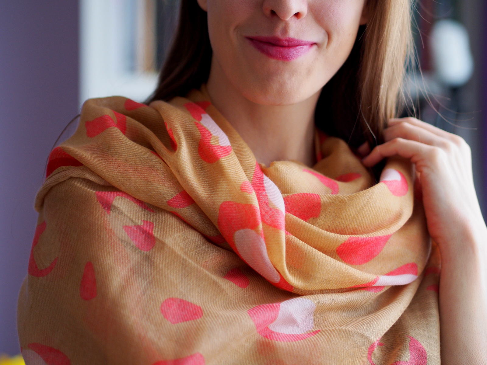 Šatka má rovnakú farbu ťavej srsti ako kabelka camel classica. Doplnená je ružovou, červenou a bielou farbou. Spolu tvoria veľmi peknú farebnú kombináciu. Šatka vás aj zahreje, takže vhodná na jar aj jeseň alebo na zimu pod kabát. Určite ju využijete. Opäť veľmi oceňujem, že štítok a označenie Oriflame je v rovnakých farbách ako šatka, čo je priam dokonalé (veď viete ako ja trčiace štítky nemám rada). Šál je na dotyk veľmi jemný, ukončený malými strapcami, ak to tak môžeme nazvať, jednoducho nemá rovný pevný koniec. Je to šál t.j. nie je to štvorec. Určite neoľutujete touto kúpou.