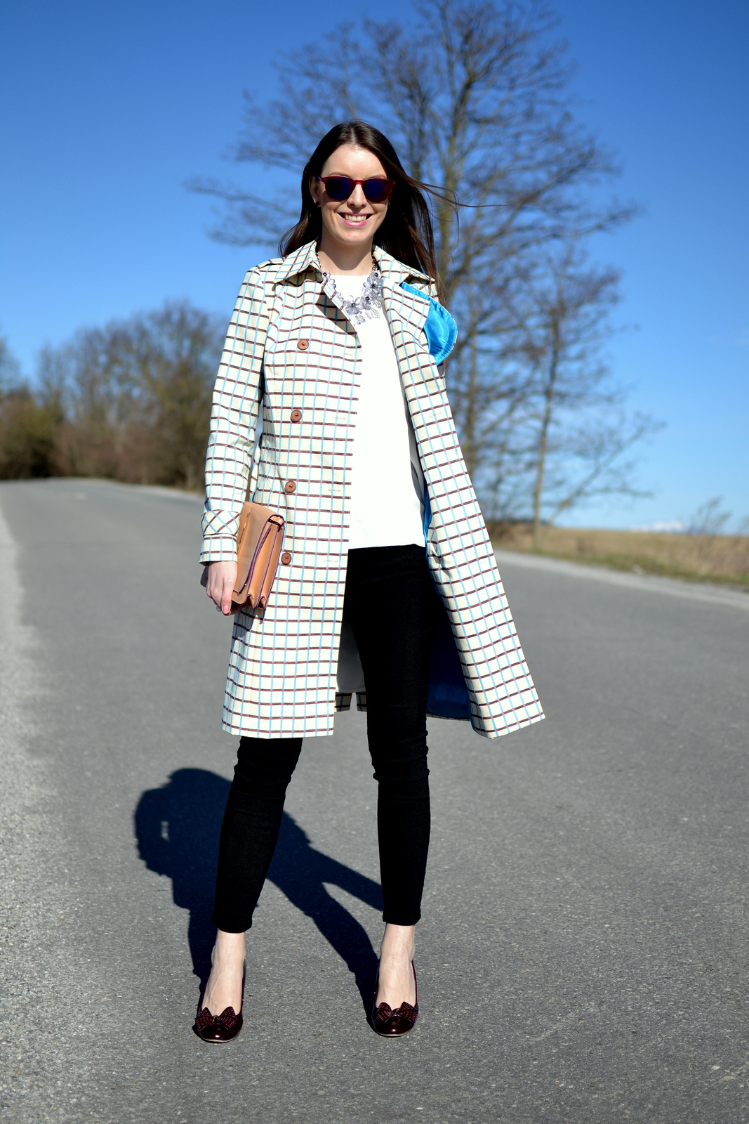 kabát: Ivana Klepáčová (kontakt & tvorba) nohavice: romwe (kúpiš TU) blúzka: romwe (kúpiš TU) kabelka: oriflame topánky: f&f okuliare: okuliarewayfarer (kúpiš TU) náhrdelník: čačky