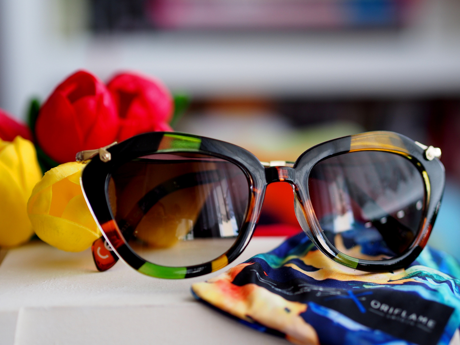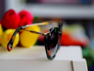 Tieto okuliare si zamilujete. Majú nááááádherný dizajn. Milujem keď okulaire nie sú celé plastové, ale sú skombinované aj s kovovými časťami. Okuliare sú vo farbách zelená, oranžová, hnedá a červená, ktoré krásne dopĺňa rám v zlatej farbe. Majú zaujímavý tvar a hnedé sklá, cez ktoré sa skvele pozerá (nie ako cez čierne). Zatiaľ som ich kombinovala ku každej farebnej kombinácii a k športovému aj elegantnejšiemu outfitu. Okuliare rozhodne odporúčam.