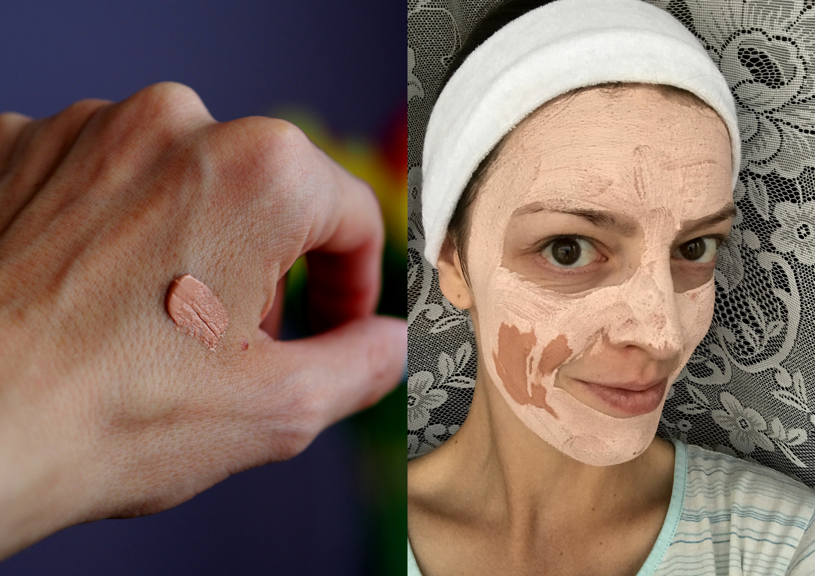 Pleťové masky som kedysi vôbec nepoužívala, no v poslednej dobe som si ich veľmi obľúbila a mám asi štyri. Hydratačnú, hĺbkovo čistiacu, zlupovaciu a teraz aj túto posilňujúci. Úplne mi učarovala ružovo-oranžová farba, ktorú maske dodáva ružový íl. Maska po nanesení zostáva oranžová a hneď začína schnúť. Keď má ružovú farbu, tak ju môžete zmyť. Po zaschnutí sa zmení na prášok a keď sa napríklad usmejete, tak sa práši 🙂 Pokožka zostáva príjemná na dotyk a hebká. Nemala som pocit, že by zostala pleť vysušená ani som nepostrehla žiadne nepríjemné napínanie, ťahanie alebo červené fľaky. Masku odporúčam pre všetky typy pleti a nezabudnite na kozmetickú čelenku Oriflame 🙂 Ja som si ju obľúbila a nosím aj keď nemám masku na pleti 🙂