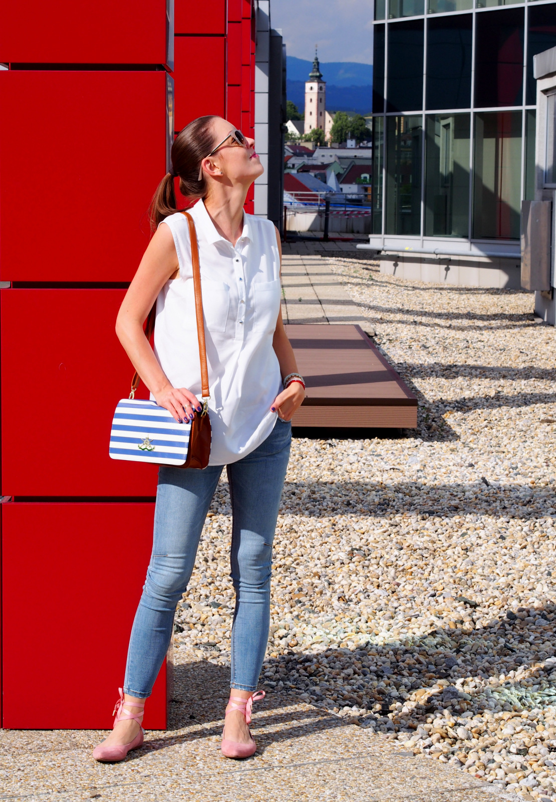 Máme za sebou prvý sviatok, kedy boli zatvorené všetky obchody. V strede týždňa, pre mňa perfektne načasované, aspoň som mala čas na zbalenia kufra na dovolenku. Btw. ak sa chystáte na dovolenku pozrite si môj packing list. V utorok som išla po práci do obchodu, nič nezvyčajné. Plán bol kúpiť pečivo na raňajky. No ísť do obchodu bola veľká chyba. Už na parkovisku sme takmer nemali kde zaparkovať a ľudia sa správali neohľaduplno. Po vstupe do obchodu som nechcela veriť vlastným očiam. Ľudia mali plné košíky jedla a rady pri pokladniach siahali až k prvej uličke. Povedali sme si, že rýchlo kúpime chlieb, nejaké drobnosti a ideme. V regáloch s pečivom boli doslova iba omrvinky a vytvorená rada ľudí, ktorá čakala kým dopečú ďalšie pečivo. Hovorím si, že to nie je normálne, ešte sa mi nestalo, že by nemali v lidli ani jeden rožok, jednoducho nič. Zrazu doplnili bagety a ľudia si ho dobre ženie trhali z rúk. Už som iba čakala kedy si začnú to pečivo kradnúť z nákupných košíkov. Hrôza. Zobrala som si jednu bagetu, ktorá unikla pozornosti pani s desiatimi kusmi veľkých bagiet, predo mnou a išli sme k pokladni. Rozprávali sme sa s pokladníkom, ktorý povedal, že majú práce ako počas Vianoc. Uff. Nastala streda, sviatok, obchody zatvorené. Ráno som si zapla dokument na CT2 a v pohodičke rozmýšľala čo si chcem na dovolenku zbaliť. Večer sme sa rozhodli ísť do kina, mala som ešte voľné poukážky. Cestou som si všimla ľudoprázdne ulice, ako z hororu haha. Rozmýšľali sme, či sme si nemali zobrať vodu, či budú vôbec predávať občerstvenie. Naše obavy boli zbytočné, samozrejme predávali. Dávno som nezažila taký pokoj v nákupnom centre. Potom sme išli do McD, chceli sme iba zmrzlinu, lebo bol skutočne horúci deň a verte neverte aj ten bol otvorený. Takže žiadna katastrofa. My sme už na takéto situácie zvyknutí, pretože v Nemecku je všetko zatvorené každú nedeľu, takže si maximálne treba dať pozor, aby ste neprišli v nedeľu a hladní 🙂 Na fotkách vidíte môj outfit, v ktorom som bola v kine. Oblečené mám jeansy, ktoré sú push-up. No posúďte, či to niečo s mojim pozadím urobilo. Vôbec to nebol zámer kúpiť si takéto rifle, aj keď mi Tomáš stále hovorí, že nemám žiadny zadok :D. Rifle sa mi veľmi páčili farbou, strihom, skrátenou dĺžkou nad členky, majú pekné detaily, sú pohodlné a s dostatkom elatanu pre moje boľavé kolená.