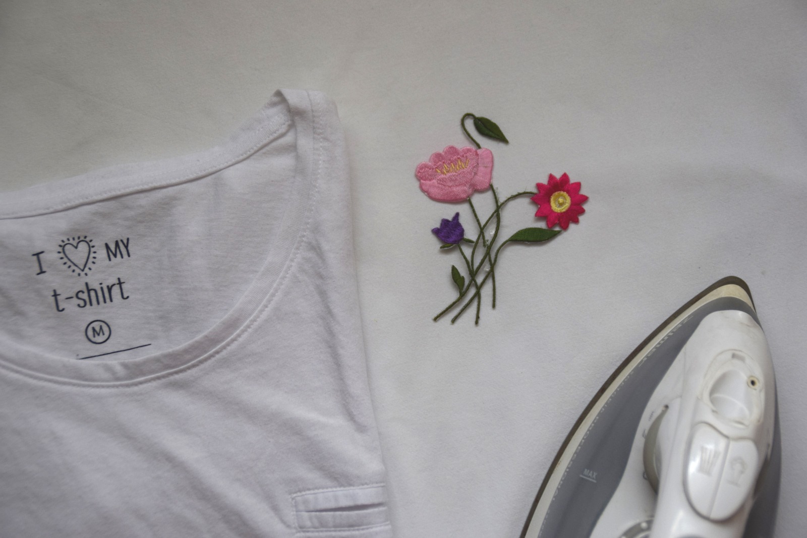 Postup je úplne jednoduchý a určite by ste na to prišli 🙂 Jednoducho si vložke medzi tričko uterák alebo podložku, tričko vyrovnajte, priložte nažehlovačku, na vrch dajte opäť nejaký tenký uterák a prejdite pár krát žehličkou. Odporúčam použiť aj paru. Nažehlovačka má na druhej strane lepidlo, ktoré sa roztopí a prilepí na tkaninu teplom 🙂 Žehličkou prechádzajte až kým nebude dôkladne prilepená. A voilá, trendy tričko s výšivkou je na svete.