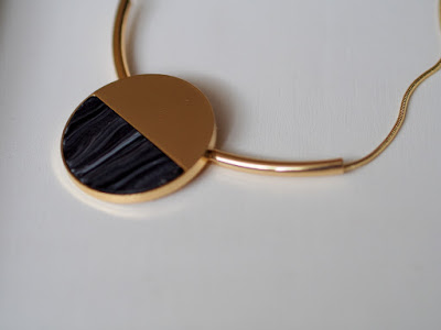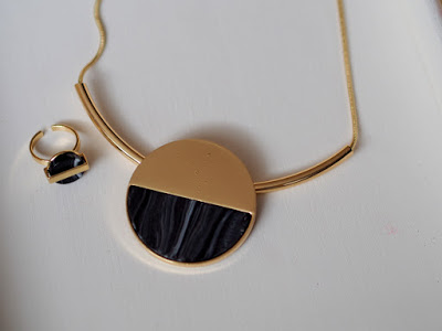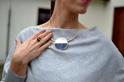 Kolekcia Still ulahodila mojim očiam 🙂 Zaľúbila som sa do nej na prvý pohľad. Vyskúšala som náhrdelník, prsteň aj kabelku. Náhrdelník je veľmi pekný a elegantný. Je výrazný a púta pozornosť. Na retiazke v zlatej farbe je zavesený veľký kruh z dvoch materiálov. Veľmi sa mi páči ako je vyriešený. Kruh je pripevnený na pevno k rúrke v zlatej farbe, cez ktorú sa prevlieka retiazka. Retiazka sa dá aj predĺžiť. Mňa to veľmi očarilo. Nosím ho do výstrihu k bielej blúzke, na modré šaty aj na šedý sveter. Vyzerá to veľmi zaujímavo a šik.