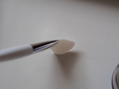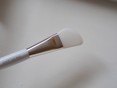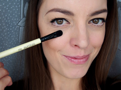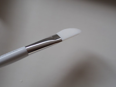 Tento štetec je pre mňa úplna novinka. Doteraz som si korektor aplikovala prstom a potom som sa väčšinou vždy zašpinila, lebo som na to zabudla. Štetec sa veľmi podobá na štetec na tiene, len tento má iba jednu stranu, plochú so štetinkami. Štetinky sú trošku pevnejšie ako pri prvých dvoch spomínaných štetcoch (aj v porovnaní so štetcom na tiene má pevnejšie štetinky). Zo začiatku som si myslela, že to nebude dobré, ale už pri druhom použití som zistila, že to že je pevnejší je výhoda. Dokážete ním aplikovať korektor až do kútika oka k nosu a takisto aj okolo nosa. Fakt je to úžasná pomôcka a na korektor už používam iba tento štetec a moje prsty zostanú čisté 🙂 Štetec je okrúhly, má dostatočne dlhé štetinky a takisto aj rúčku. Paráda.