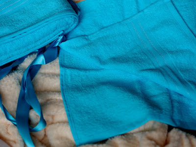 Luxusná sada pozostávajúca z jemného froté uteráka a osušky v nádhernej tyrkysovej farbe. Dostanete ich previazané saténovou stužkou. Materiál: 100% bavlna.
