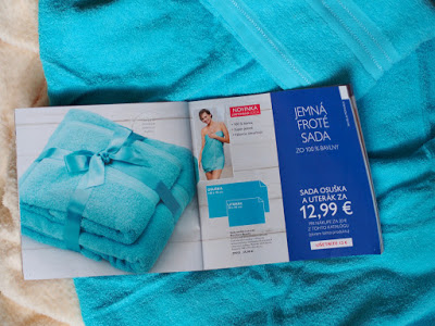 Keď už máte nové krémiky z radu Loving care pekne uložené v kúpeľni, doprajte si aj nové uteráky v peknej tyrkysovej farbe. V balení ich dostanete previazané saténovou stuhou 🙂 Verte mi, ani sa vám ich nebude chcieť rozbaľovať, tak vyzerajú krásne. V balení sú dva uteráky. Malý, ktorý je vhodný skôr na ruky alebo tvár a väčší, ktorý je vhodný na telo (prípadne na vlasy). Osušky nie sú extra veľké, presne zodpovedajú obrázku v katalógu. Keď som sa do neho zabalila, tak mi siahal od pŕs k zadku. Ja mám rada trošku dlhšie a väčšie osušky, ale na plaváreň alebo aquaparku stačí. Osušky sú mäkučké a na jednej strane majú aj ozdobný lem. Tip na darček: darujte niektoré produkty z rady Loving care a doplňte ich touto sadou uterákov. Podľa mňa super darček. Uteráky môžete získať za výhodnú cenu, info v katalógu.