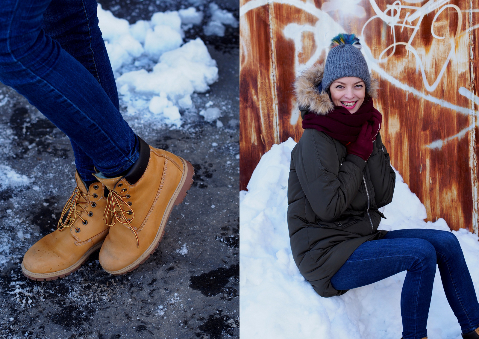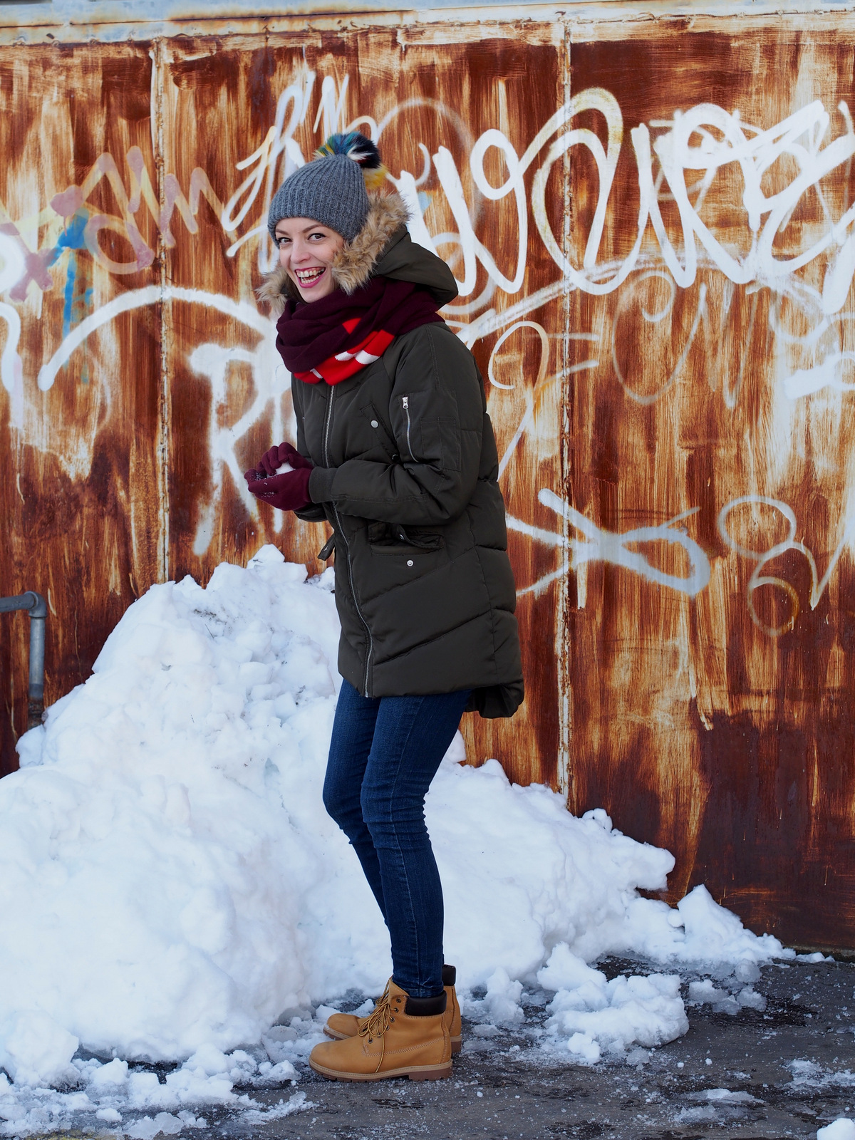 vetrovka: house; šál, čiapka: zara; rukavice: oriflame; rifle: c&a; topánky: spartoo.sk; sveter: secondhand
