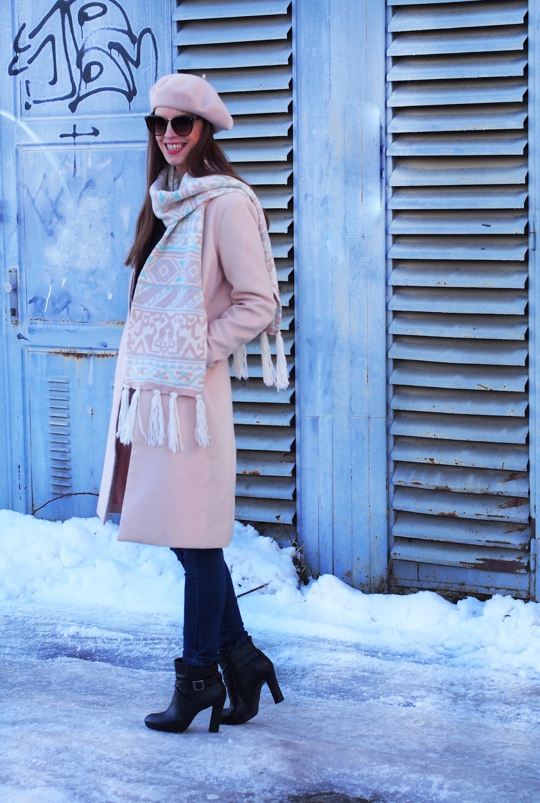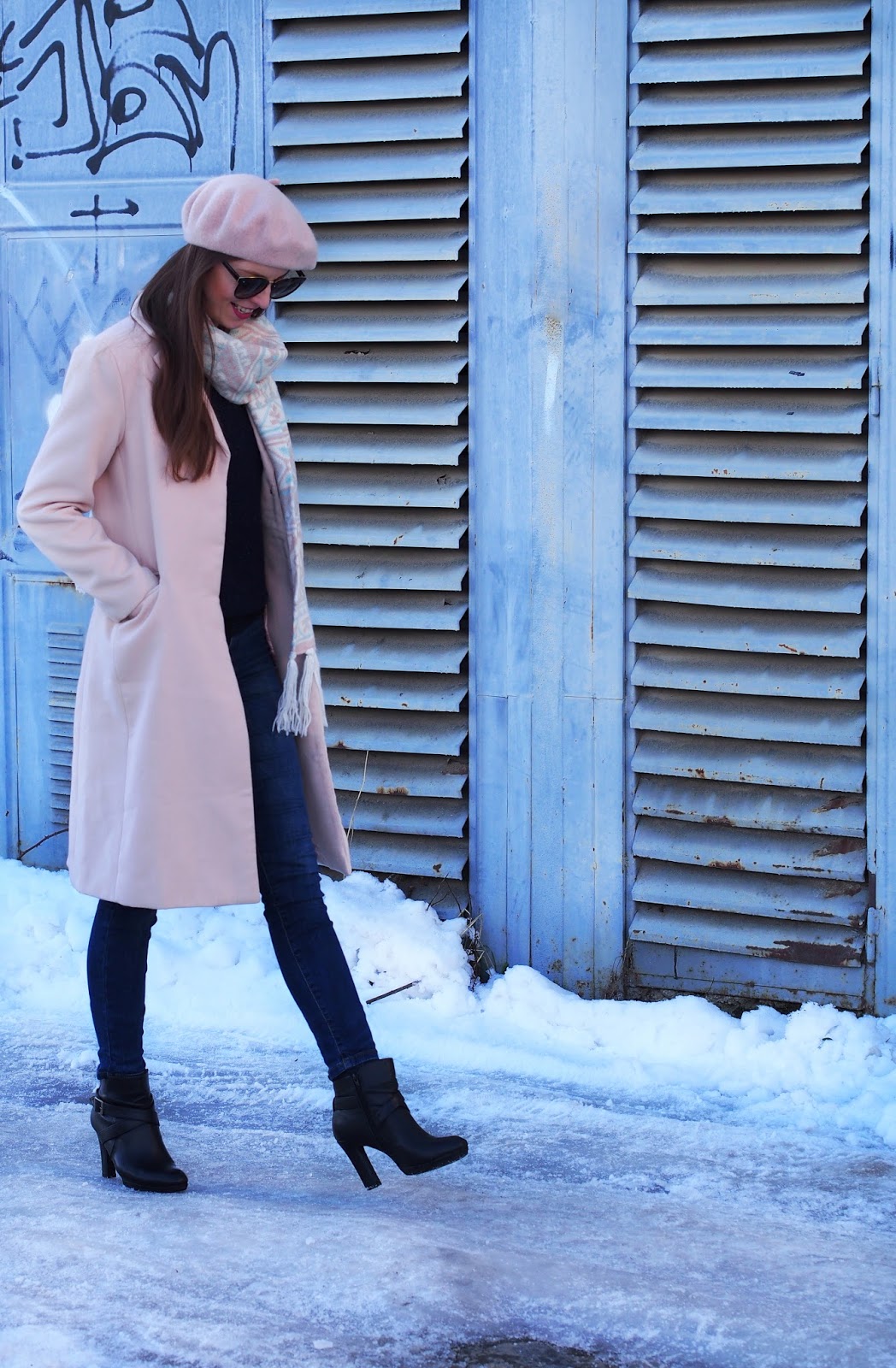 Text k tomuto príspevku som napísala a vymazala už asi desať krát. Píšem ho už dva dni, pretože mám neskutočnú potrebuje dostať zo seba hnev a sklamanie, ktoré sa vo mne nahromadili. Najradšej by som do “celého sveta” vykričala, ako sa hrozne cítim, ako mi ublížila a sklamala osoba, ktorú som považovala za najbližšiu osobu a dôverovala som jej celým ja a nemám chuť žiť … ale potom si hovorím, aký to bude mať zmysel. Už na tom nič nezmením, vlastne ani už nechcem. Jediné čo chcem, je dokázať jedného dňa odpustiť. Ľútosť je to posledné, čo potrebujem, preto sa poďme pekne venovať outfitu a nevenujem pozornosť prvej časti tohto textu (ale trošku sa mi uľavilo predsa len). So zimou a chladným počasím si len málokto spojí takýto svetlý outfit vyskladaný z púdrovo ružovej farby. Kabátik mám v šatníku už dlhšiu dobu a je veľmi pohodlný a pekný. Hodí sa k šatám, nohaviciam aj k jeansom. Stačia iba správne doplnky. V tomto outfite som ho doplnila ďalšími kúskami v púdrových farbách. Baretku som si zamilovala, aj keď mi pár z vás písalo, že sa mi nehodí. Kedže má kabát fazónku je potrebný aj hrubý šál, aby bol krk pekne v teplúčku. Najväčšia dilema bola s kabelkou, preto nemám žiadnu. V akej farbe by ste doladili kabelku? Poraďte mi 🙂 V outfite som sa cítila skvelo, je elegantný a veľmi šik. Nosíte v zime takéto svetlé farby alebo sa im skôr vyhýbate?