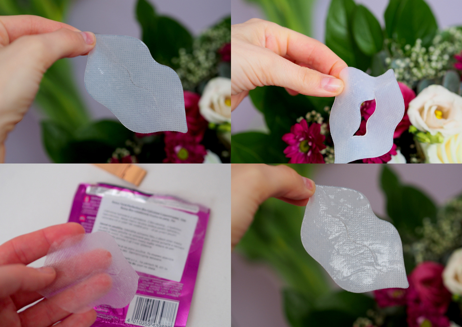 V balíčku nájdete textíliu vystrihnutý v tvare pier. Je naplnená gélom, takže ak ju raz rozstrihnete, je potrebné ju hneď použiť inak vyschne. Pred použitím je potrebné odstrániť ochrannú fóliu z obidvoch strán masky. Pery jemne očisti (stačí micelárna voda) a masku priložte na pery. Trošku pritlačte, poposúvajte aby bola pekne na celých perách a nechajte pôsobiť 15 minút. Po uplynutí času masku zložte a zvyšky gélu vklepte do pier.