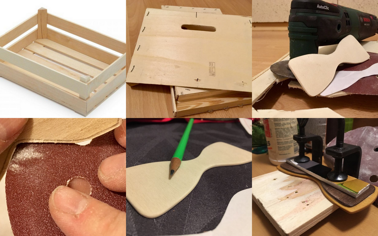 Nápad vyrobiť motýlika z debničky napadol môjmu kamarátovi Vilovi (a súčasne manželovi mojej najlepšej kamošky), s ktorým sa poznáme už roky a je rovnako kreatívny ako ja (aj on je vodnár) alebo ja som rovnako kreatívna ako on?! 🙂 Takže celú “hrubú prácu”, ako som to nazvala, urobil Vilo. Nebola som pri tom, ale poslal mi presný návod ako postupoval aj zopár fotiek, ktoré vidíte na fotke vyššie.