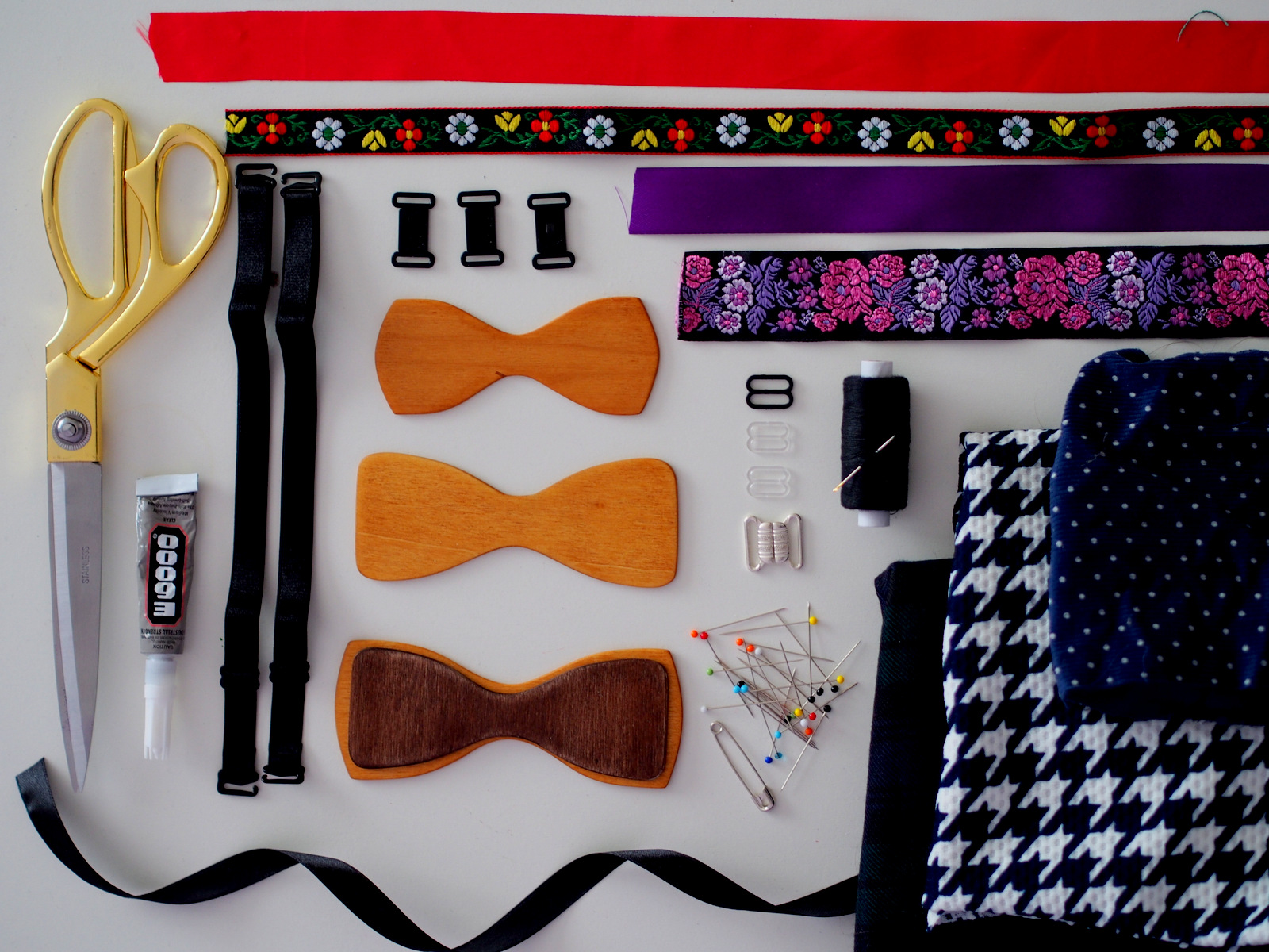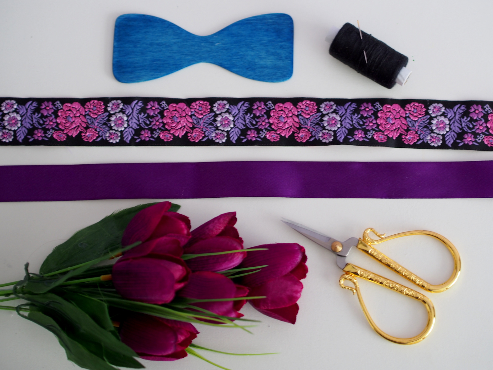 Vôbec som netušila, že nákup pomôcok bude tak veľký “problém”. Na zapínanie som potrebovala saténovú stuhu, osmičku a samotné zapínanie alebo koncovku. V prvej galantérii nemali nič. V druhej mali zapínanie v striebornej farbe, ktoré bolo vhodné jedine na môj, dámsky, motýlik. V tretej galantérii tvrdili, že nič také nemajú (ukazovala som fotky) no keď som pristúpila k pultíku mali tam asi 10 verzií ehm nevyjadrujem sa. Kúpila som si natešené hneď viacej kusov a takisto aj osmičky, cez ktoré sa uťahuje stuha. V ďalšej galantérii som však objavila remienok z podprsenky, čo bolo super, pretože ste nemuseli nič vyrábať a ešte to bolo aj na gumičke. Mali však iba jeden pár t.j. na dva motýliky. Preto som ešte dokúpila aj saténovú stuhu, ktorú mali asi vo všetkých farbách sveta a všetkých hrúbkach a aj dvoj vrstvové. Odporúčam najprv kúpiť koncovky a potom stuhy, aby ste ich dokázali spojiť 🙂 V galantérii som nakupovala aj dekoračné stuhy, kvetinové a také s folklórnym motívom. Tie boli asi na tom celom najdrahšie aj keď boli očividne vyšívané strojom. Nepotrebovala som toho veľa, kúpila som si iba pol metra, čo bolo minimálne množstvo. Ešte sa zastavím pri tej dĺžke. V niektorých galantériách vám predajú aj 20 centimetrov a niekde je to stanovené na meter. Skúste si ich prejsť viac, aby ste zbytočne nemíňali veľa peňazí. Saténovú stužku odporúčam asi nekupovať, radšej kúpte gumičku. Ja som síce vyrábala zapínanie zo stužky, ale je to veeeeľmi jemné a motýlik je oveľa ťažší, takže sa obávam, či to vôbec udrží, ja ich časom vymením, keď zoženiem tie ramienka. Takisto sa so saténovými stužkami veľmi zle pracuje pri šití, robia sa dierky a zvláštne sa sťahuje, nedá sa pracovať so šijacím strojom, musíte šiť ručne, čo potom nevyzerá až tak dobre.
