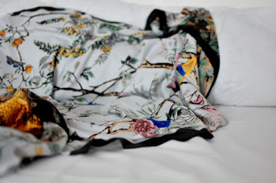 Hodvábne jemná šatka s farebným vzorom inšpirovaným životom v záhrade. Je výnimočne veľká, aby ste ju mohli nosiť rôznymi spôsobmi.