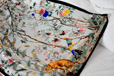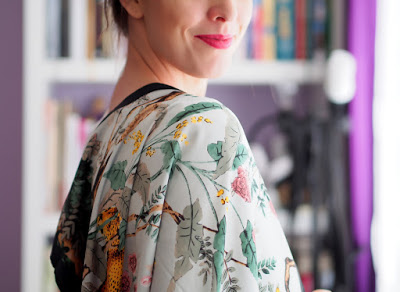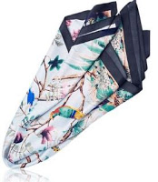 Táto šatka bola láska na prvý dotyk. Ide o hodvábne jemnú šatku, ktorá je síce z polyesteru, ale pripomína hodváb a satén. Chcem tým povedať, že je klzká, super na jar nie na zimu, nezahreje. Má nádherné vzory zvierat, zelene, stromov a veľmi príjemné farby. Môžete sa s ňou hrať a každý deň si ju uviazať inak a ukázať inú farbu a iný vzor. Za mňa je to top šatka akú som mala. Úžasne vyzerá k obyčajnému bielemu tričku, čiernemu saku, k jeansom ale aj k šatám a sukni. Odporúčam všetkými desiatimi 🙂