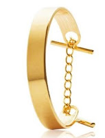 Klasický pevný náramok zo zlatistého kovu s retiazkou na zapínanie